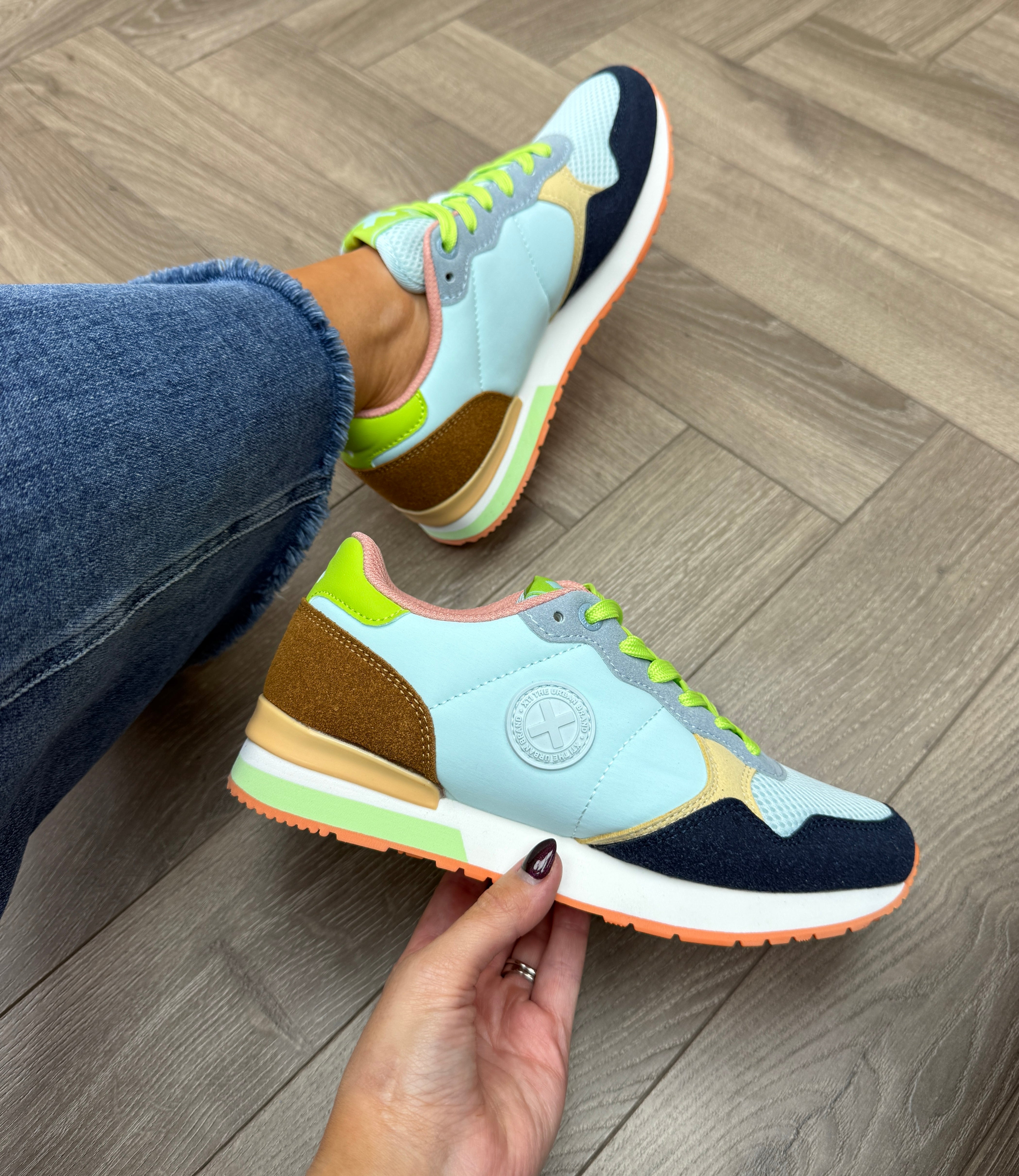 XTI (SS26) 144061 Multi Trainer With Neon Green Laces - Celeste (X41)