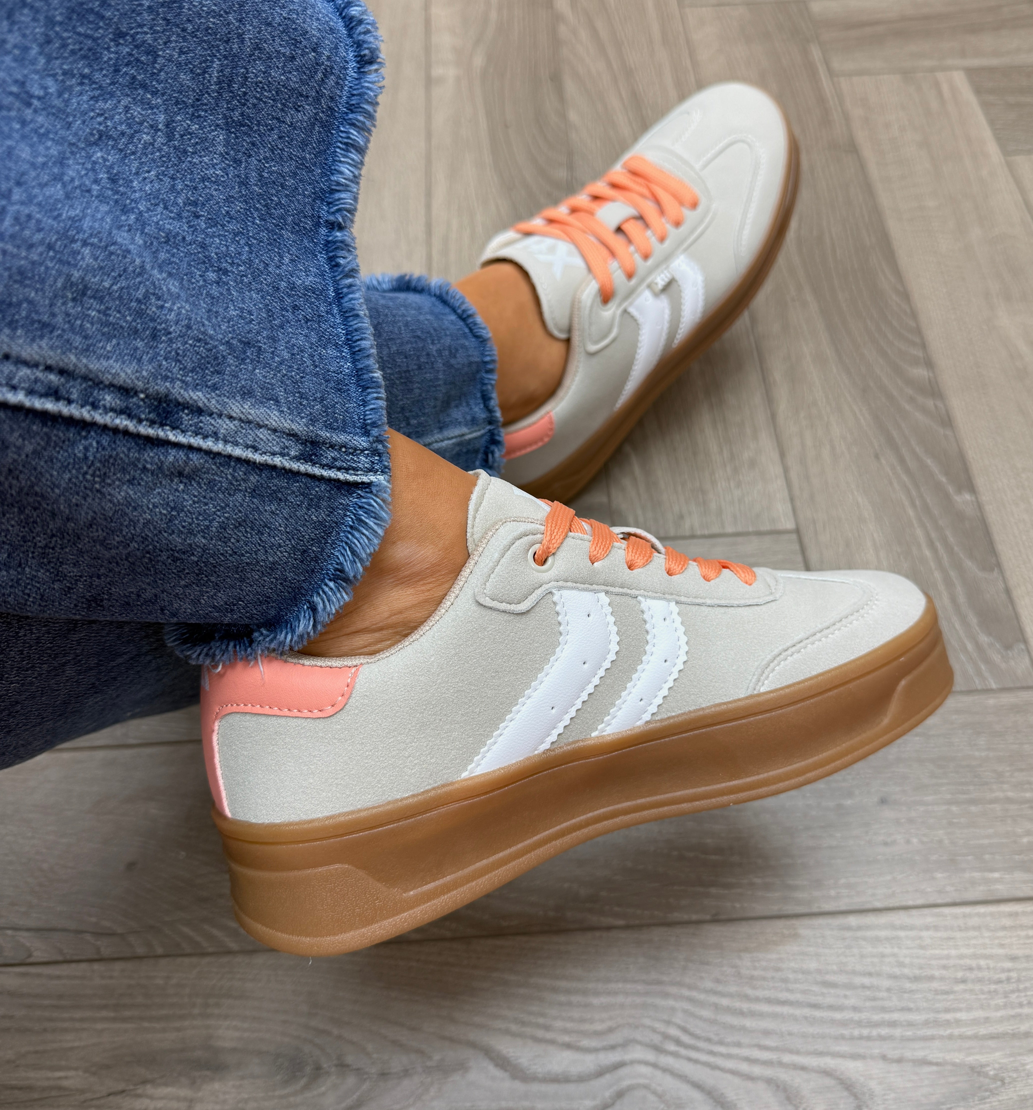 XTI (SS26) 145016 Platform Gum Sole Trainer With Peach Laces - Z.BAB.Hielo (X14)