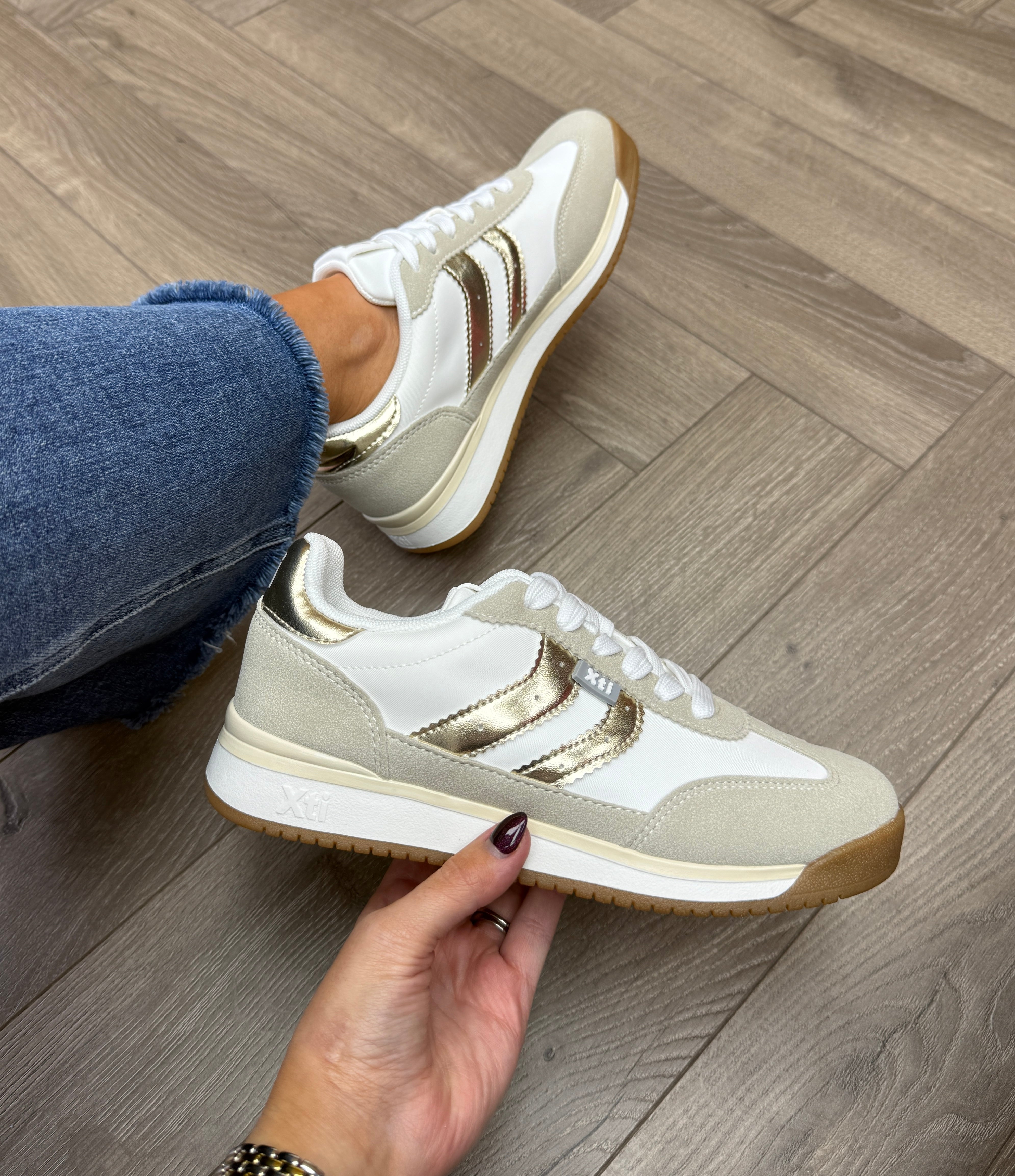 XTI (SS26) 145019 Trainer with Metallic Trim - Z.Tex.Oro (X43)