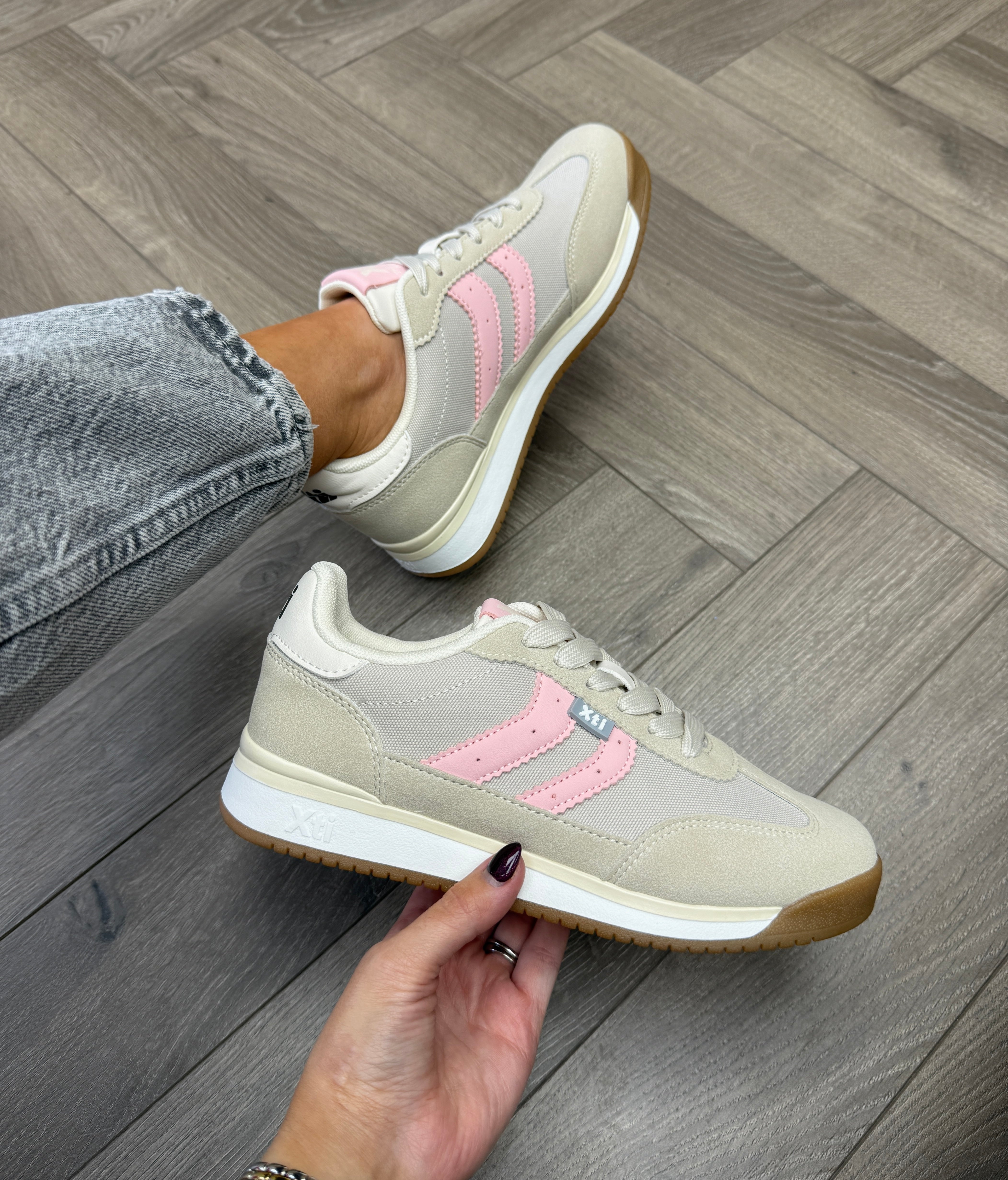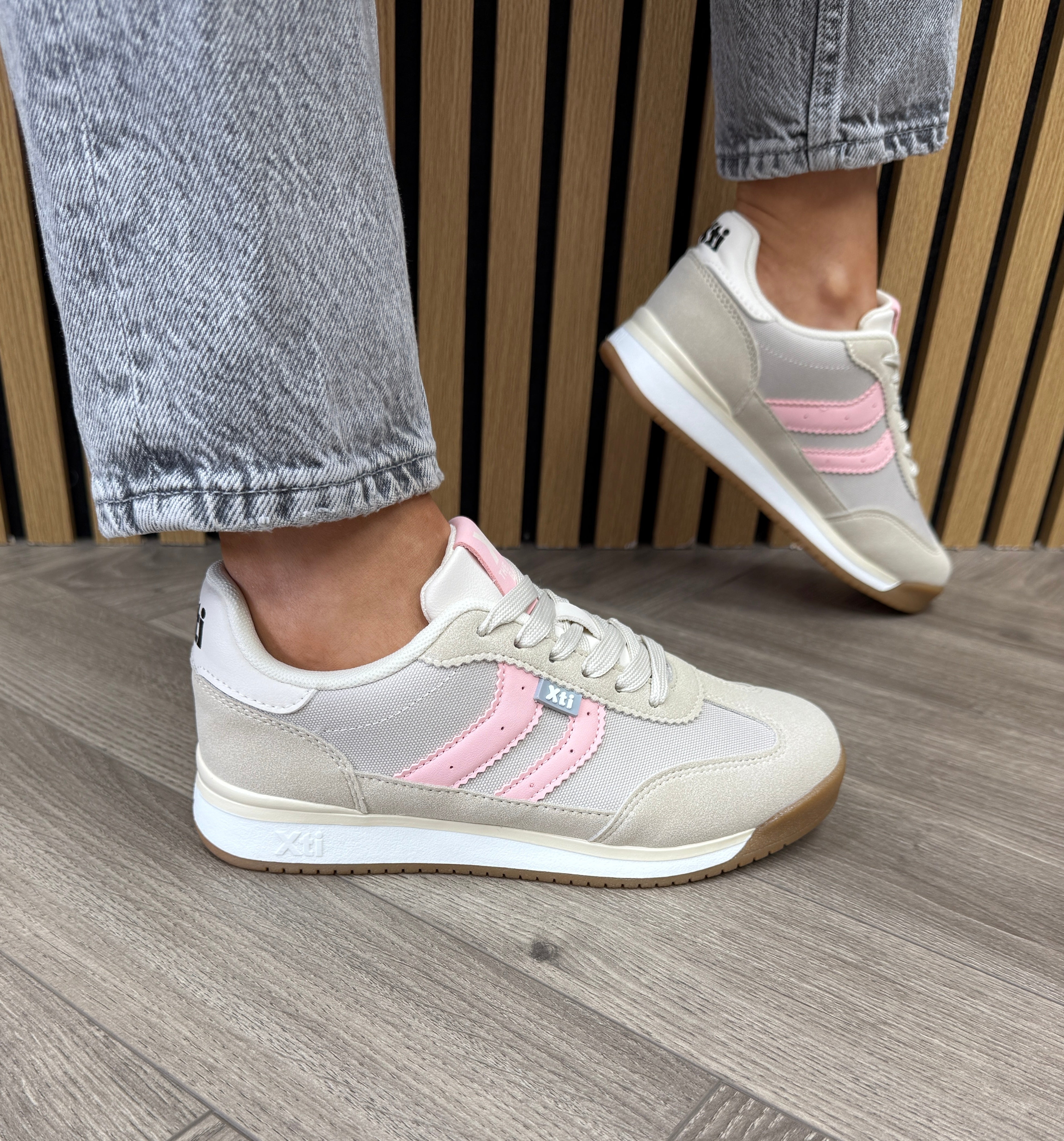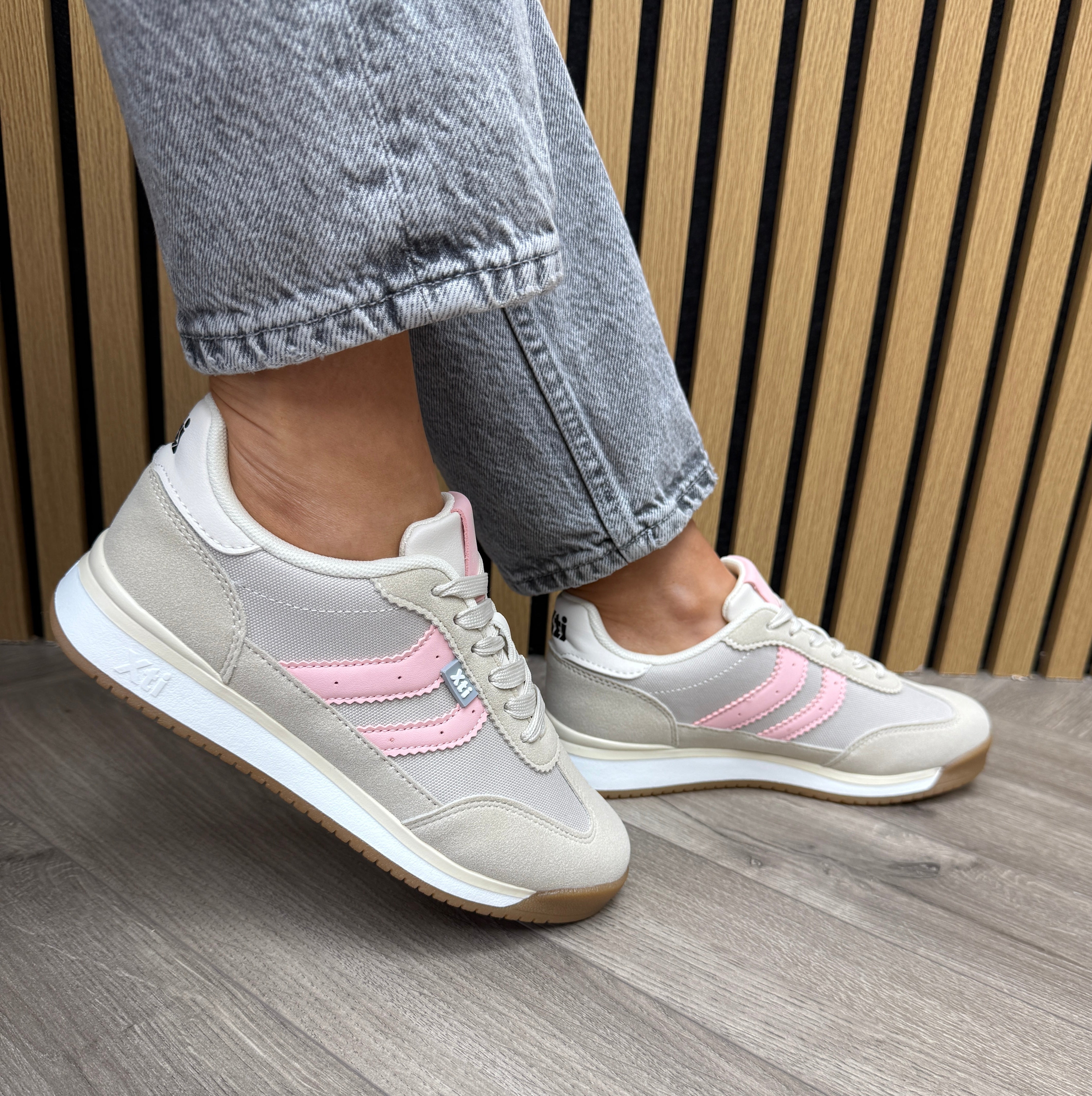 XTI (SS26) 145019 Trainer with Pale Pink Trim - Z.Tex.Hielo (X21)