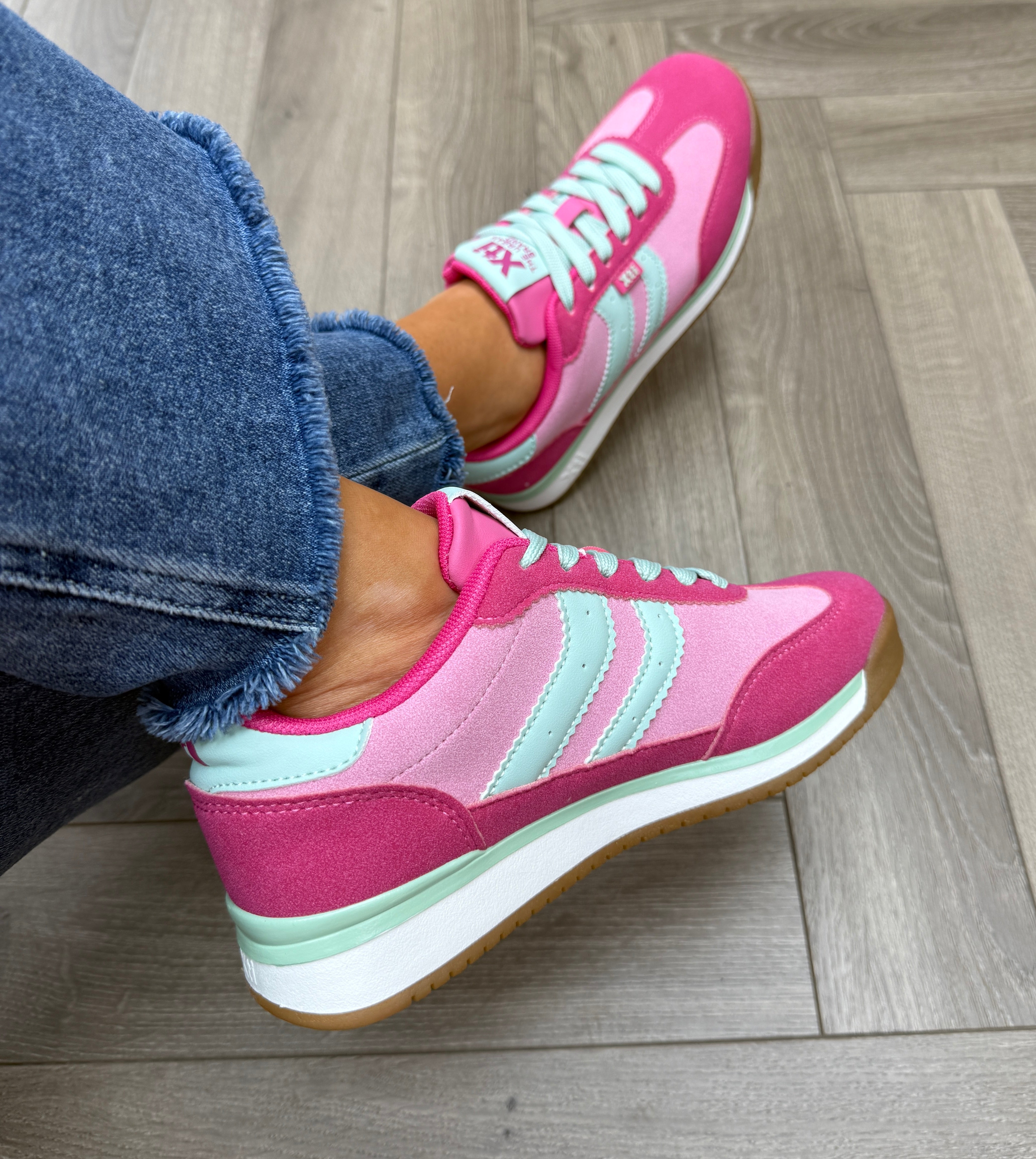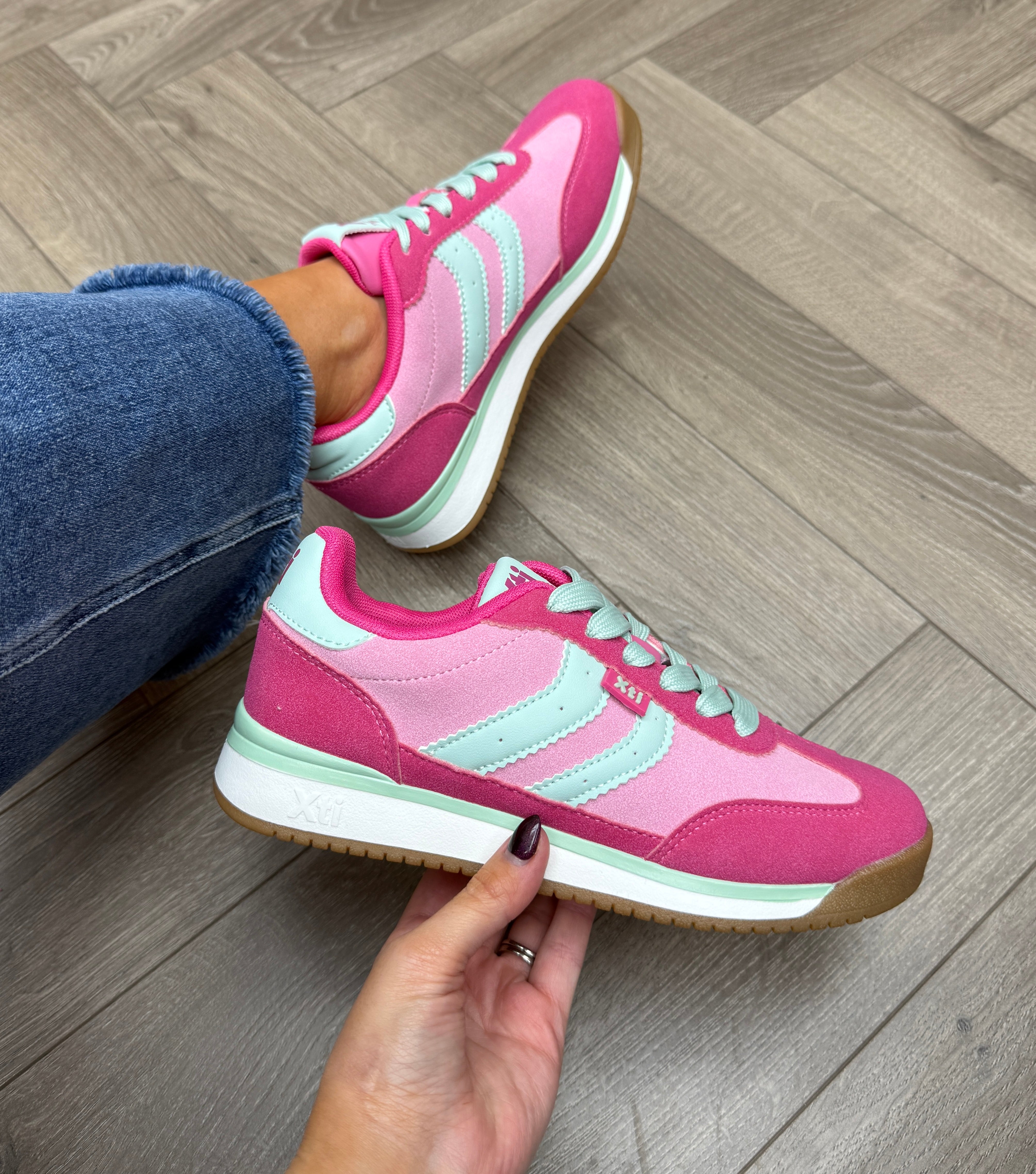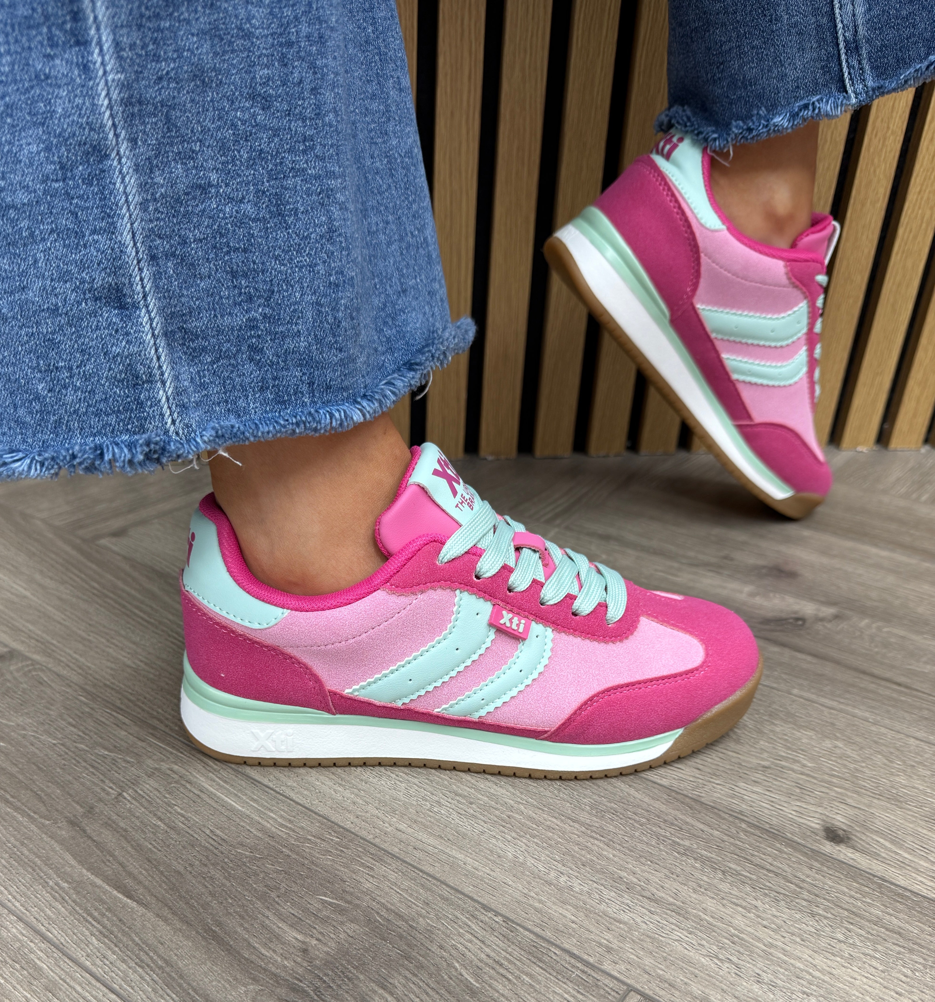 XTI (SS26) 145019 Trainer With Mint Green Laces - Z.Tex.Fucsia (X30)