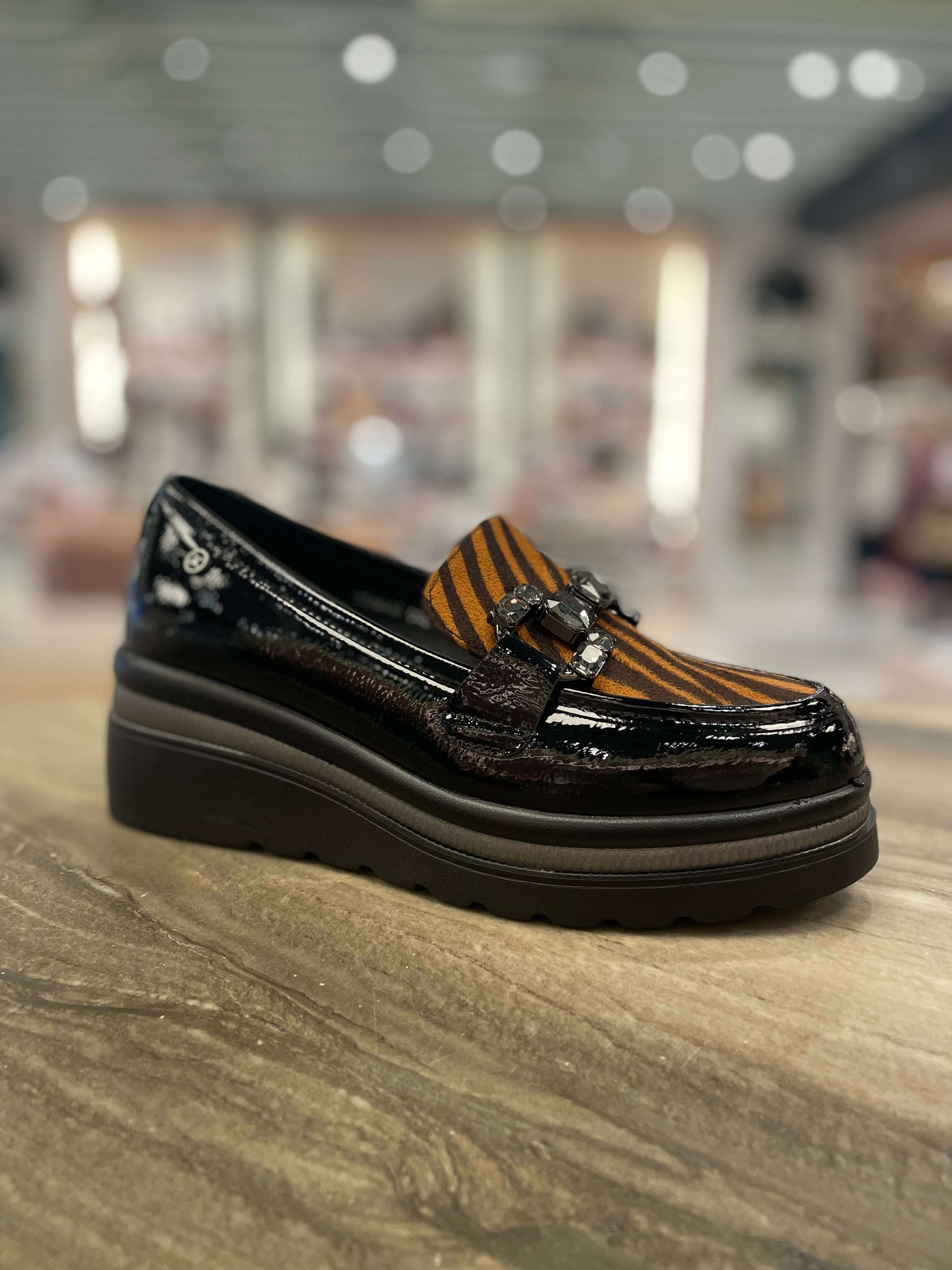 Zanni & Co (AW25) ‘Tarsus One’ Wedged Patent Loafer with Diamanté Buckle - Ink Tribe (Z19AW)