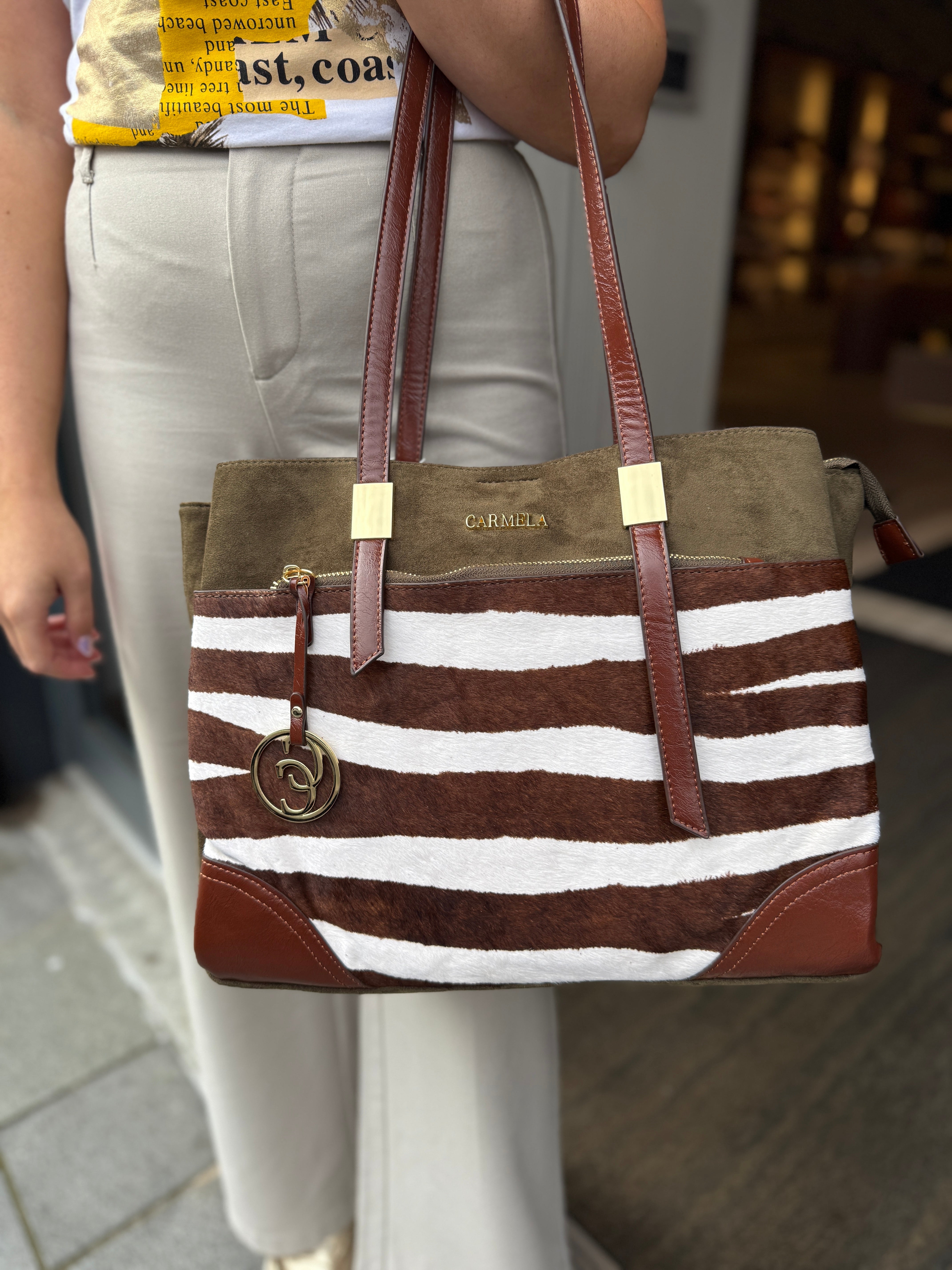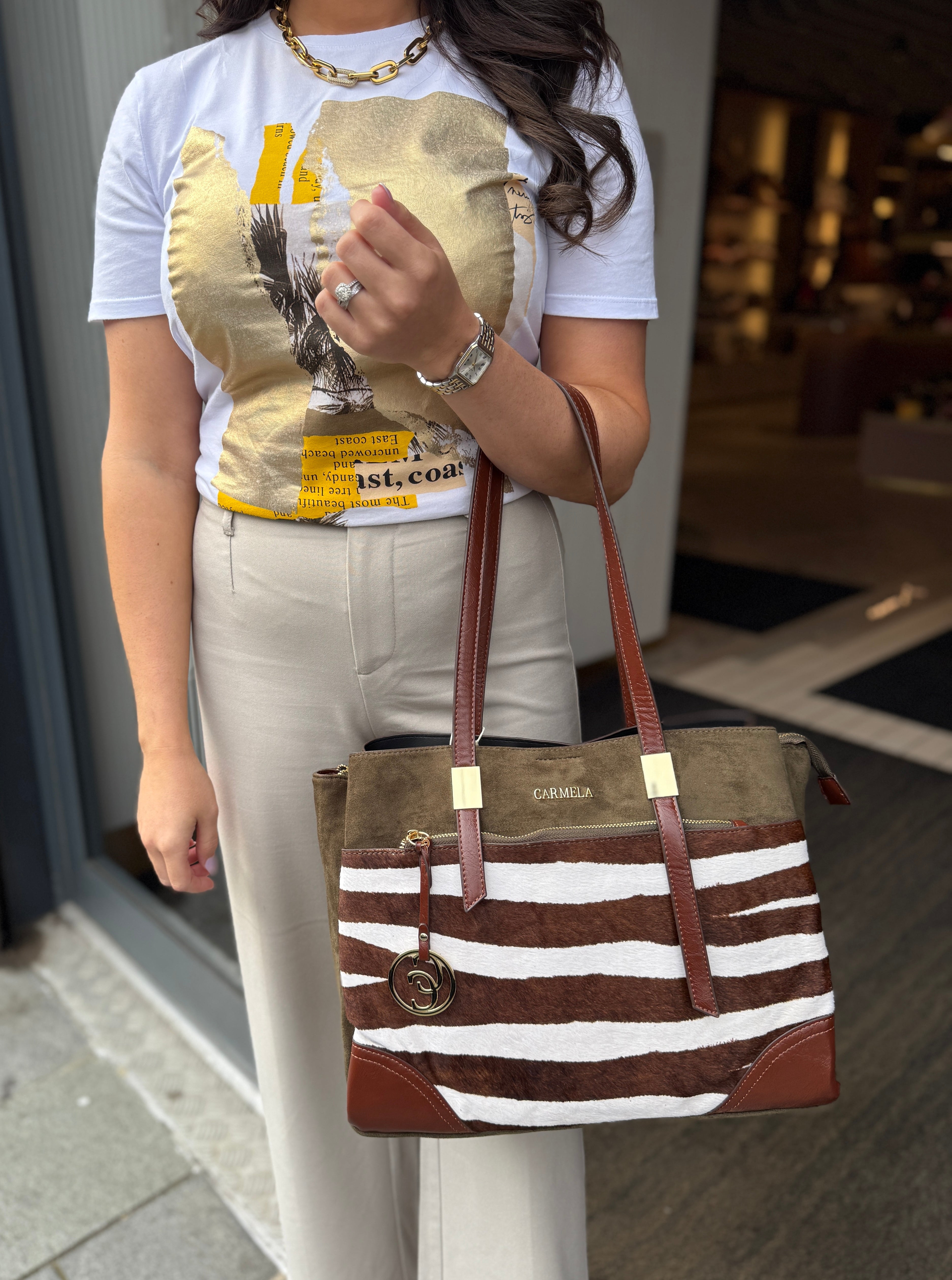 Carmela (AW25) 186183 Shopper Bag With Zebra Print -B.Tex.Kaki (CB3)