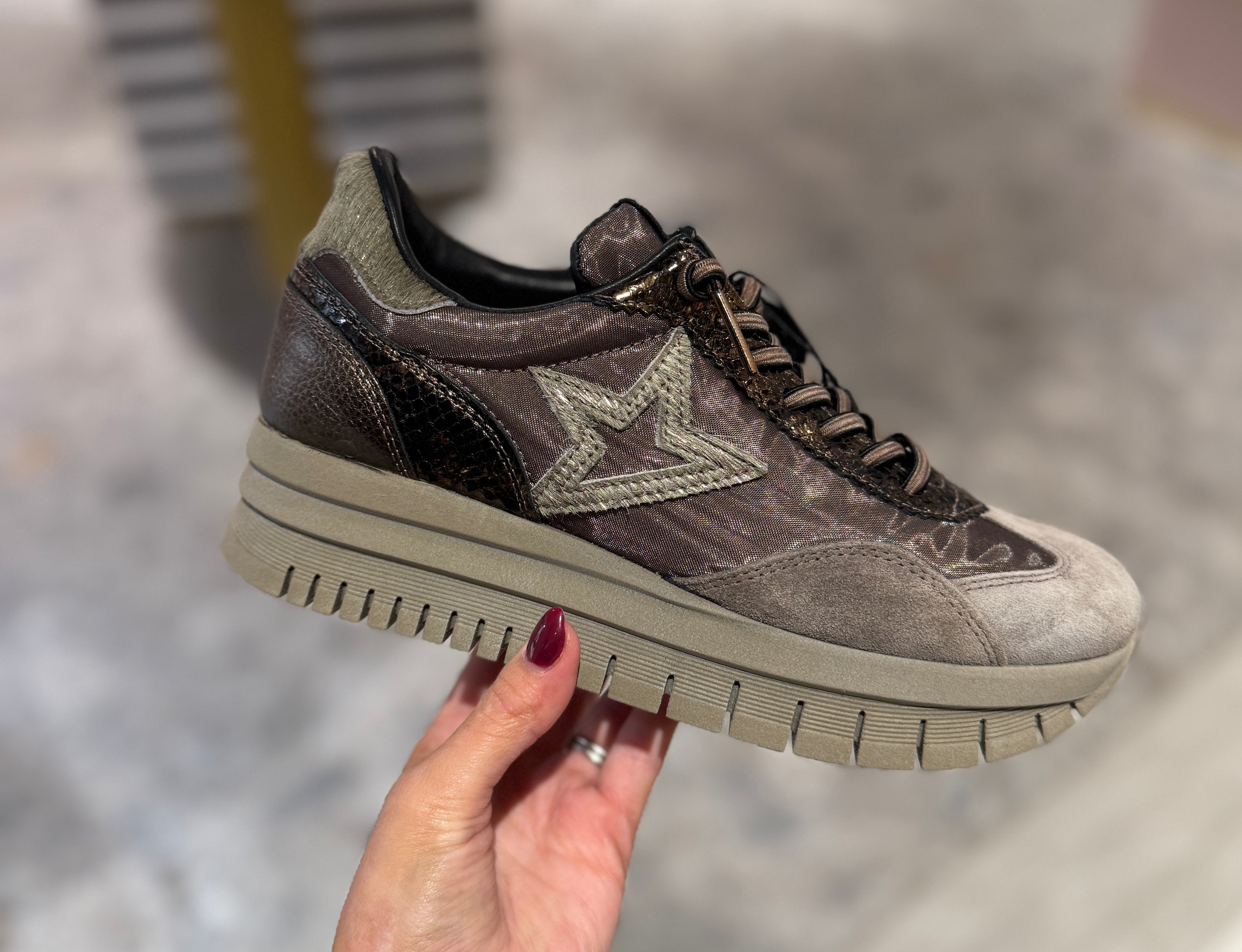 Cetti C-1259 SRA Platform Trainer With Metallic Trim Heel and Elastic Lace - Ante-Metal Oxido (C8AW)