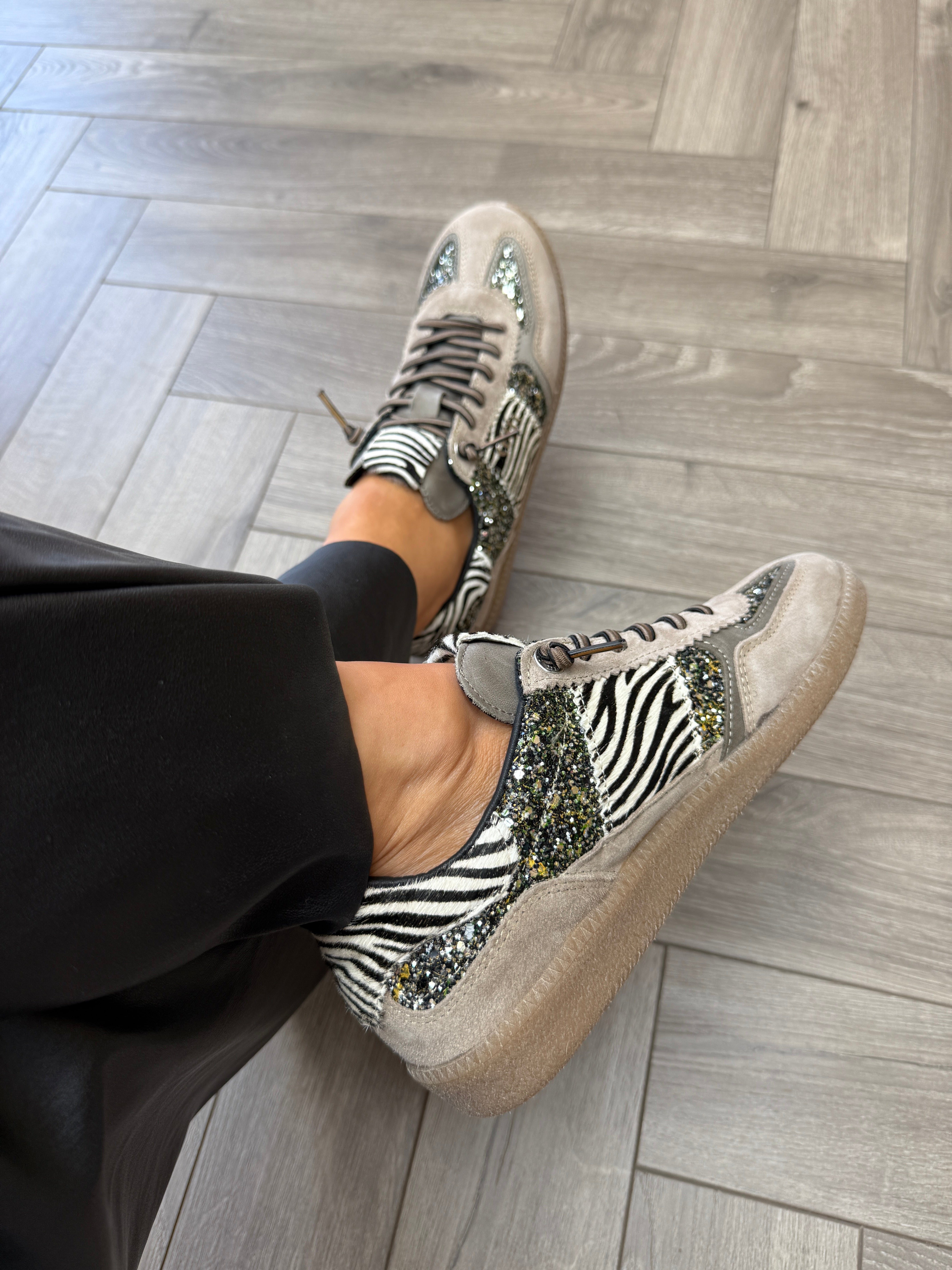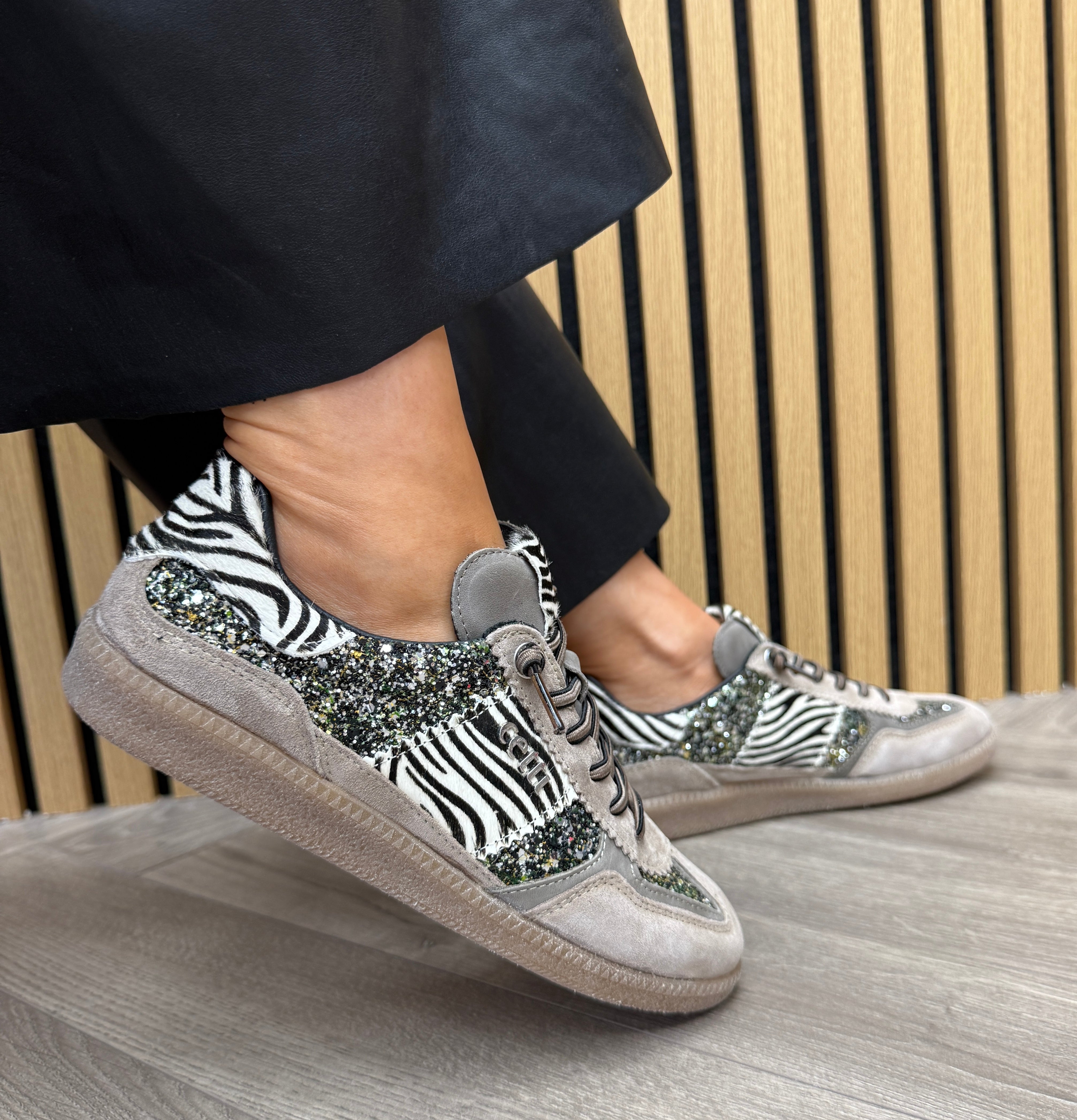 Cetti C-1395 SRA Gum Sole Trainer With Glitter & Zebra Print - Ante-Glitter Groupie (C6AW)