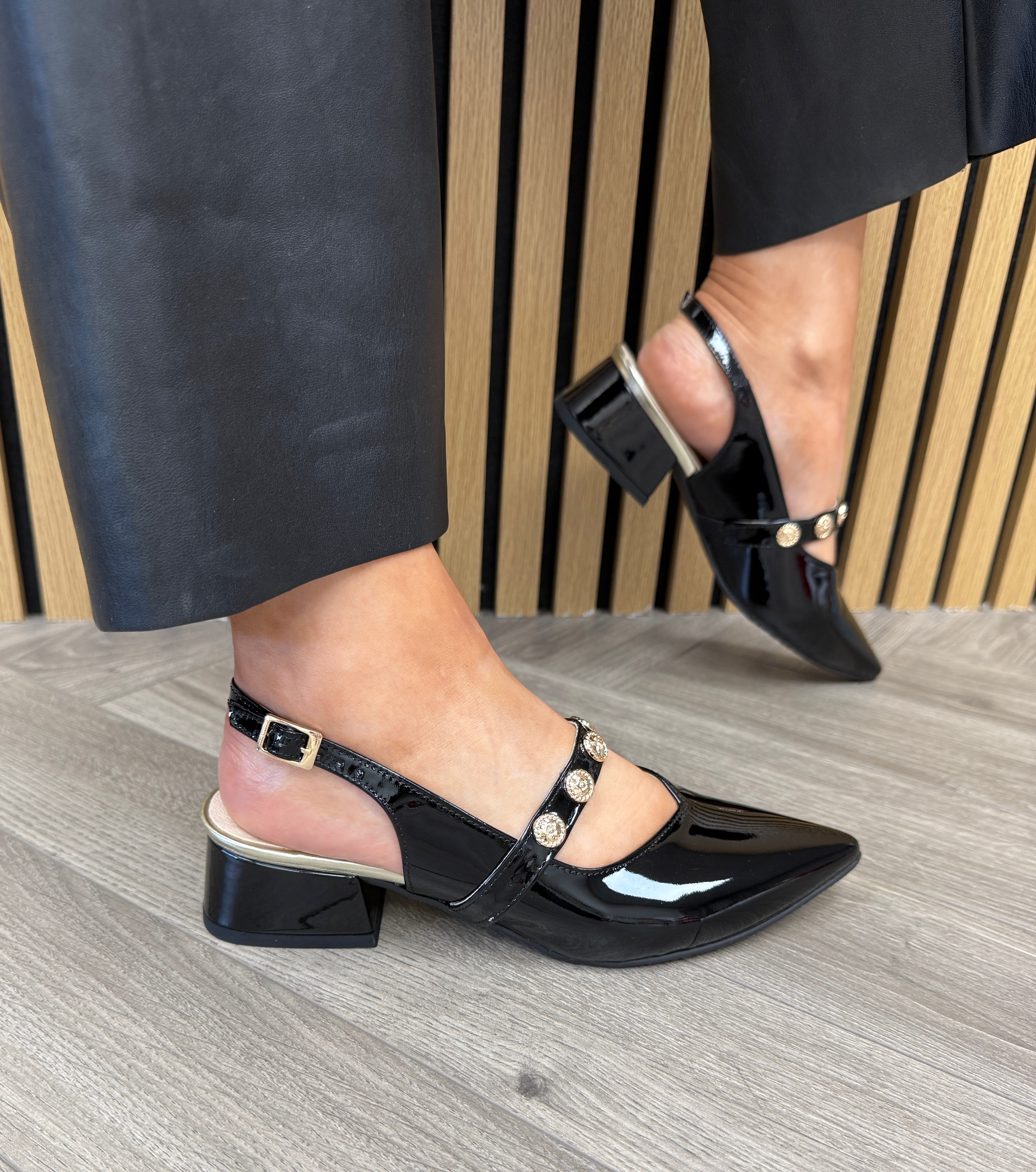 Emis (E7) Patent Pointed Toe Slingback SL8424/F956o - Black