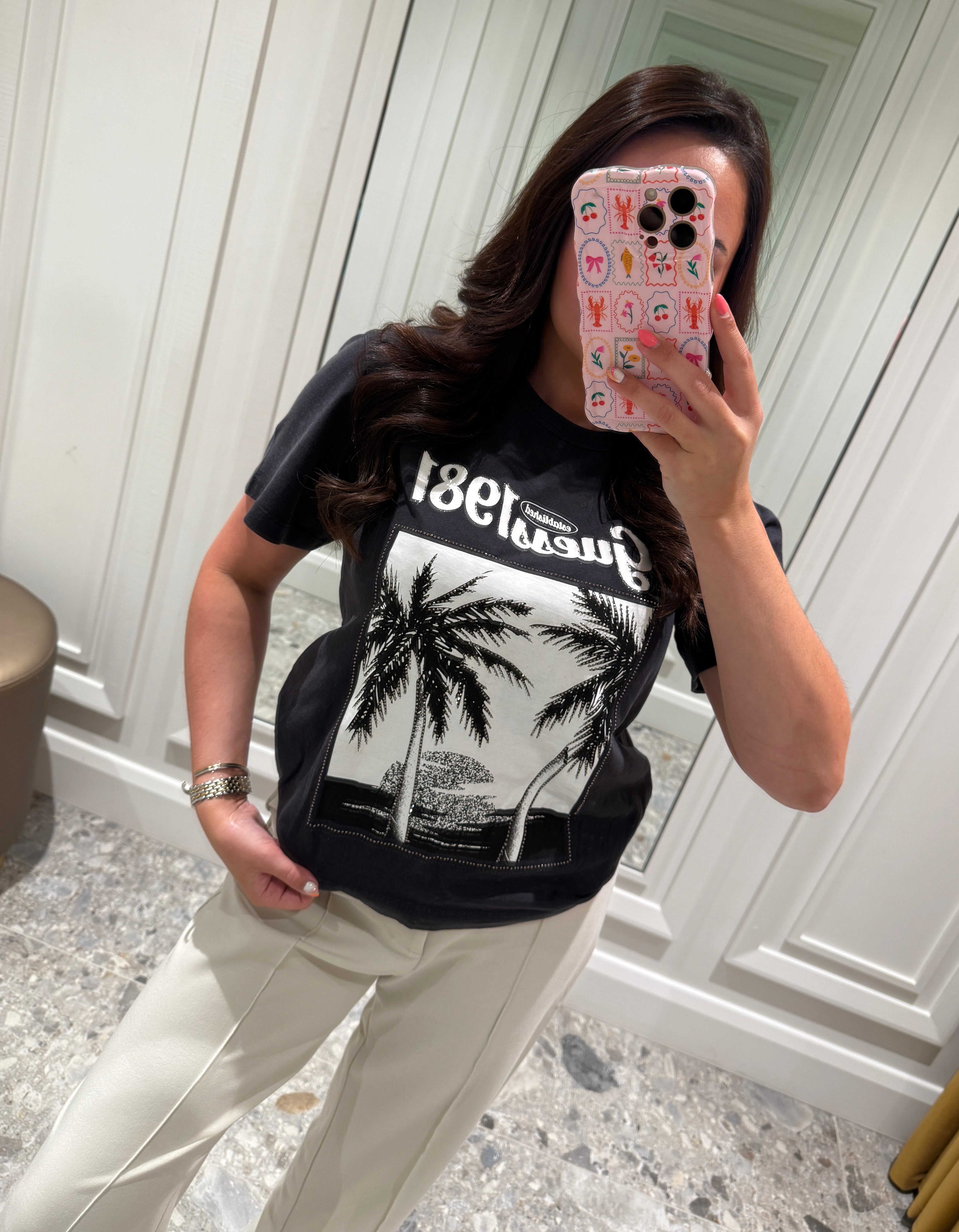 Guess (AW25) W5YI17I3Z14 T-Shirt With Palm Trees - F9P6 (Black) (GC13)