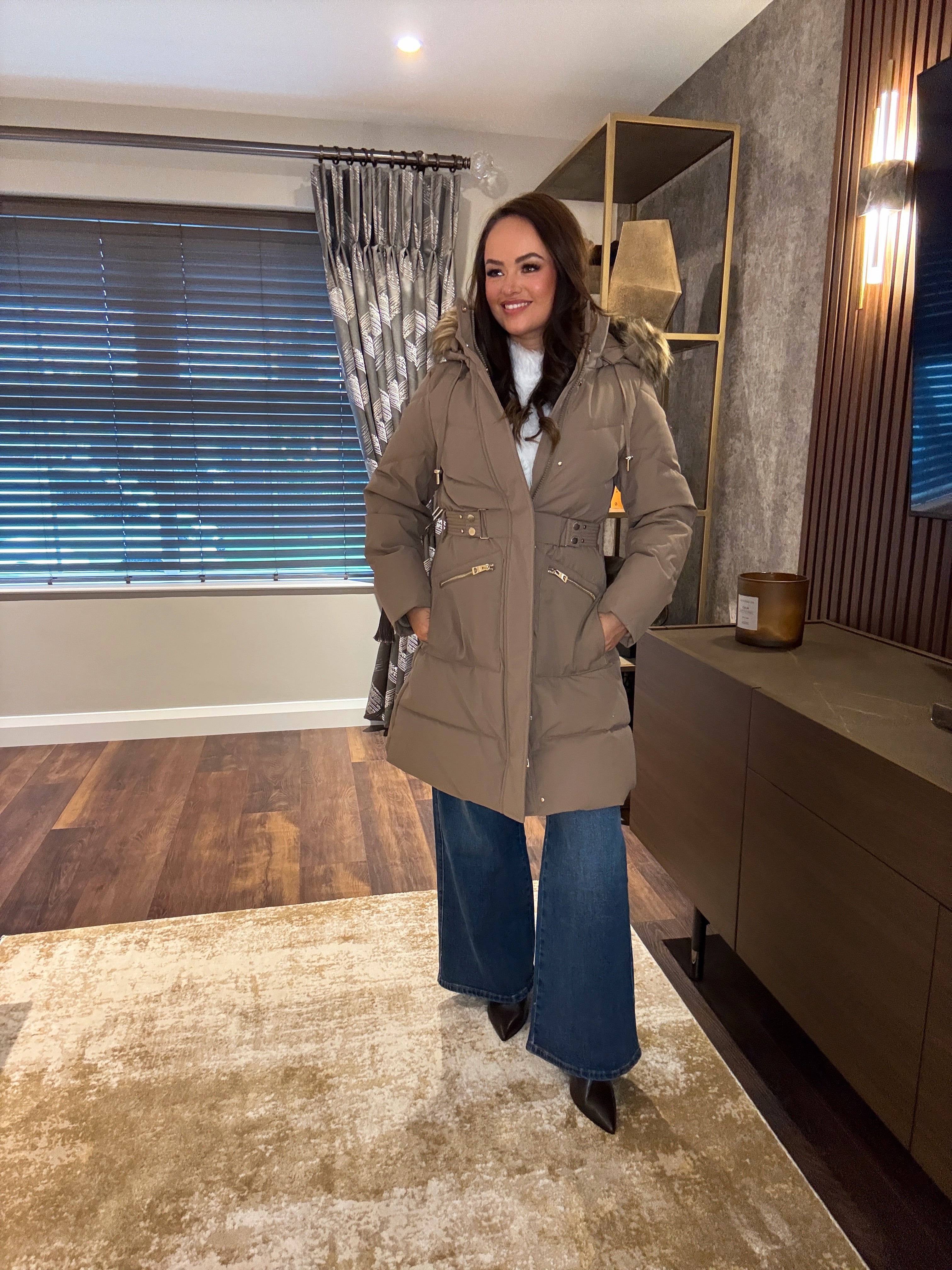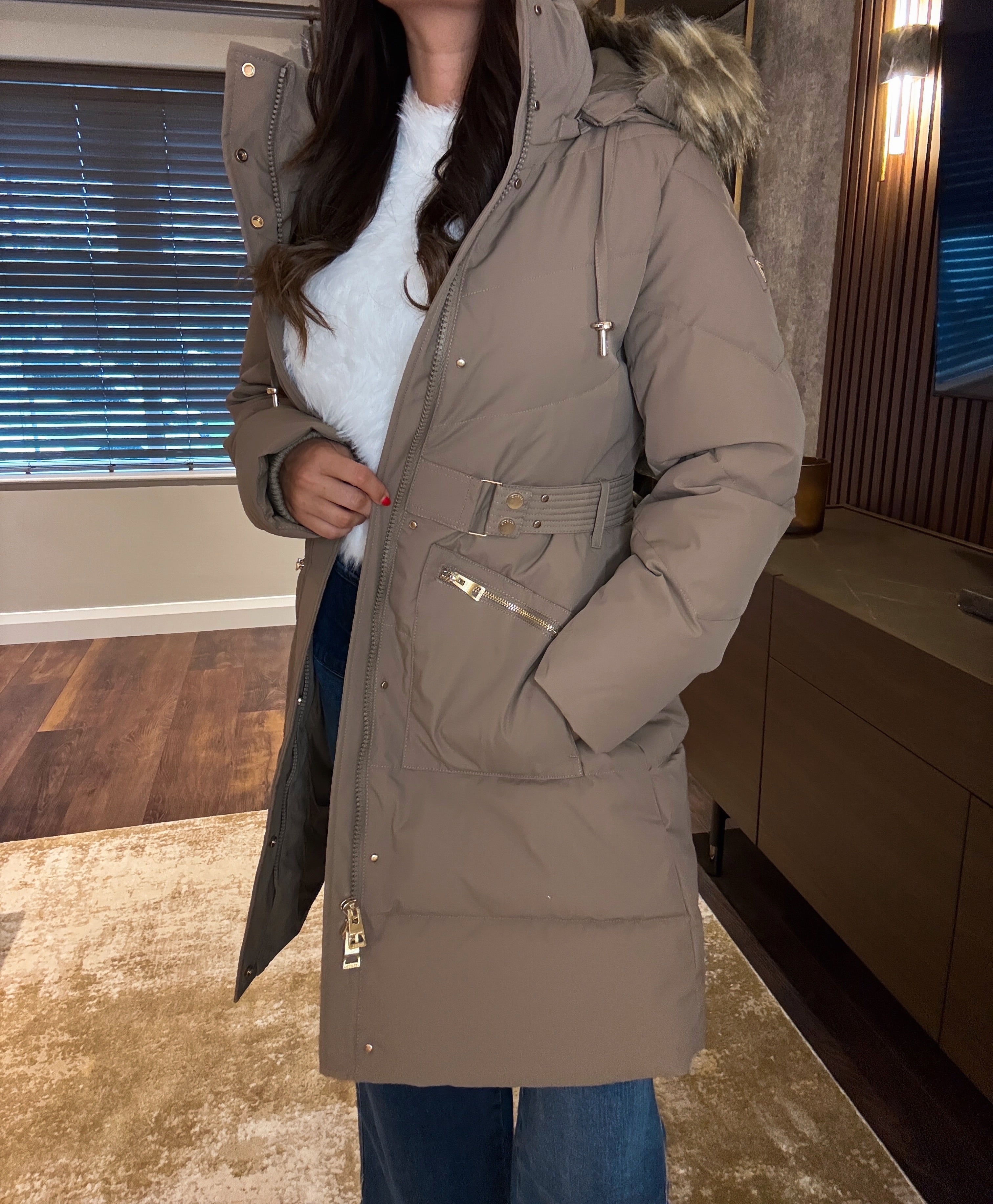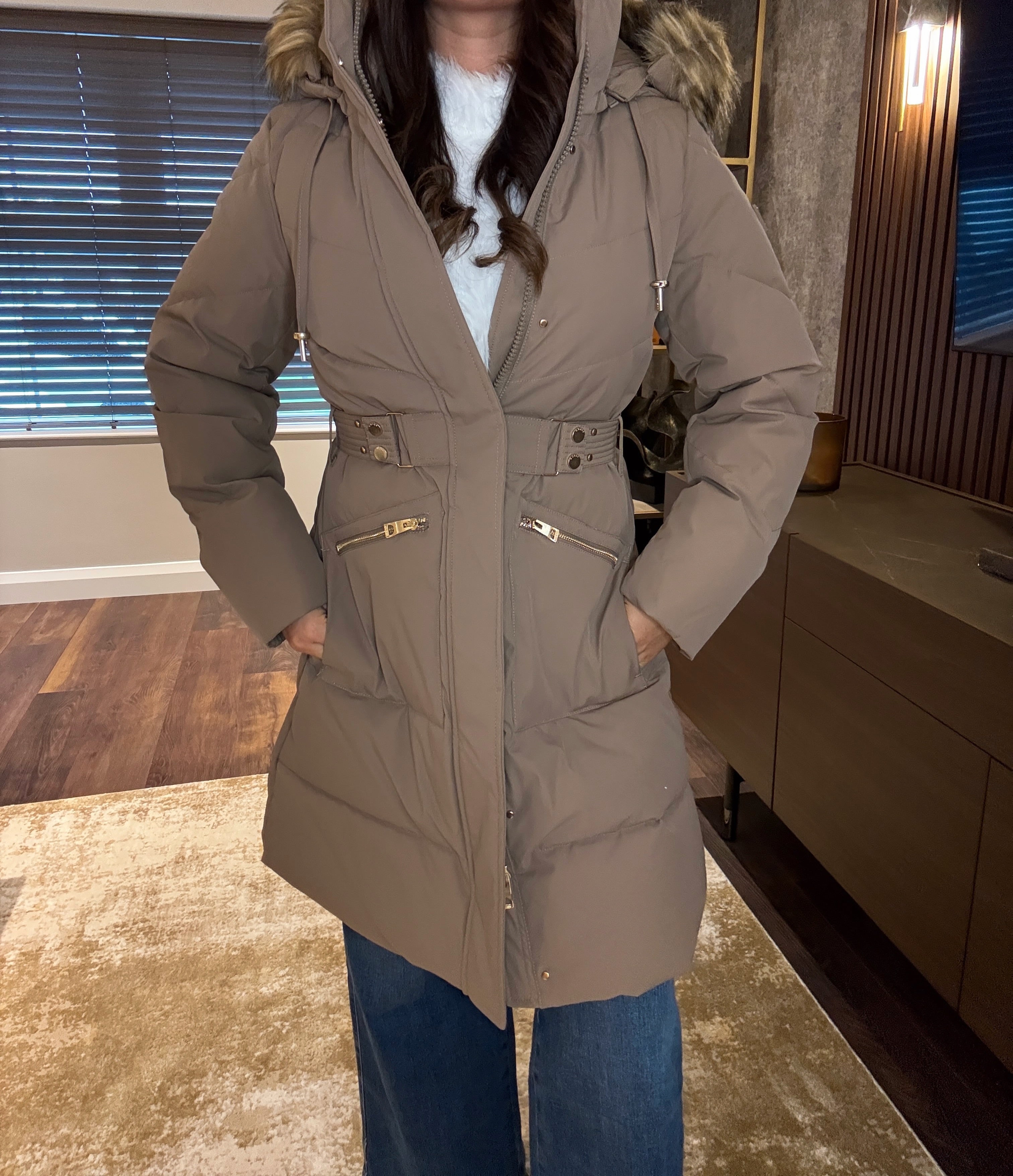 Guess W5BL45WGJR2 Long Padded Coat With Fur Hood - F1AX (Taupe) (GC54)