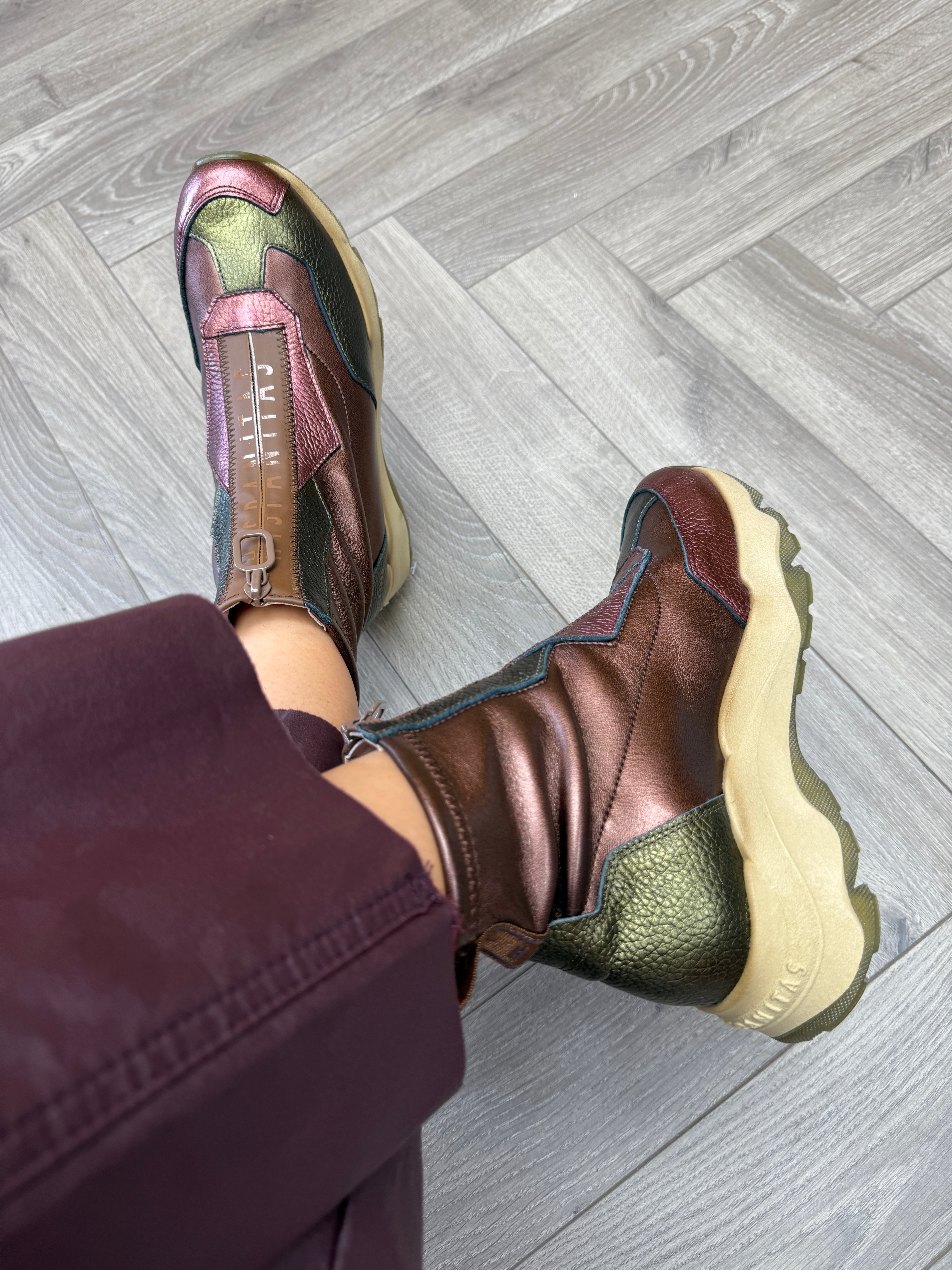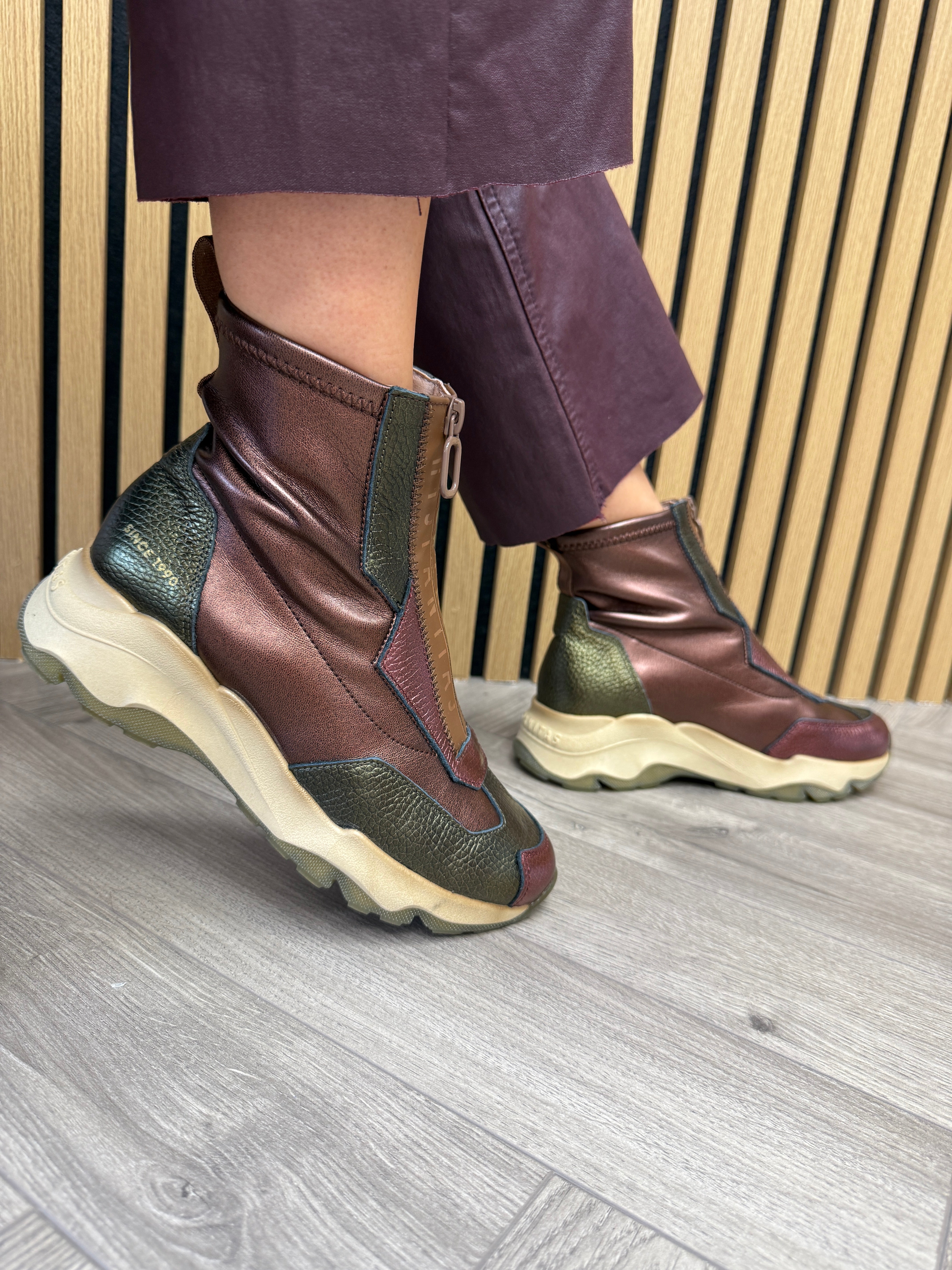 Hispanitas (AW25) CHI254321 Metallic Front Zip Trainer Boot - Wine/Avellana (H35AW)