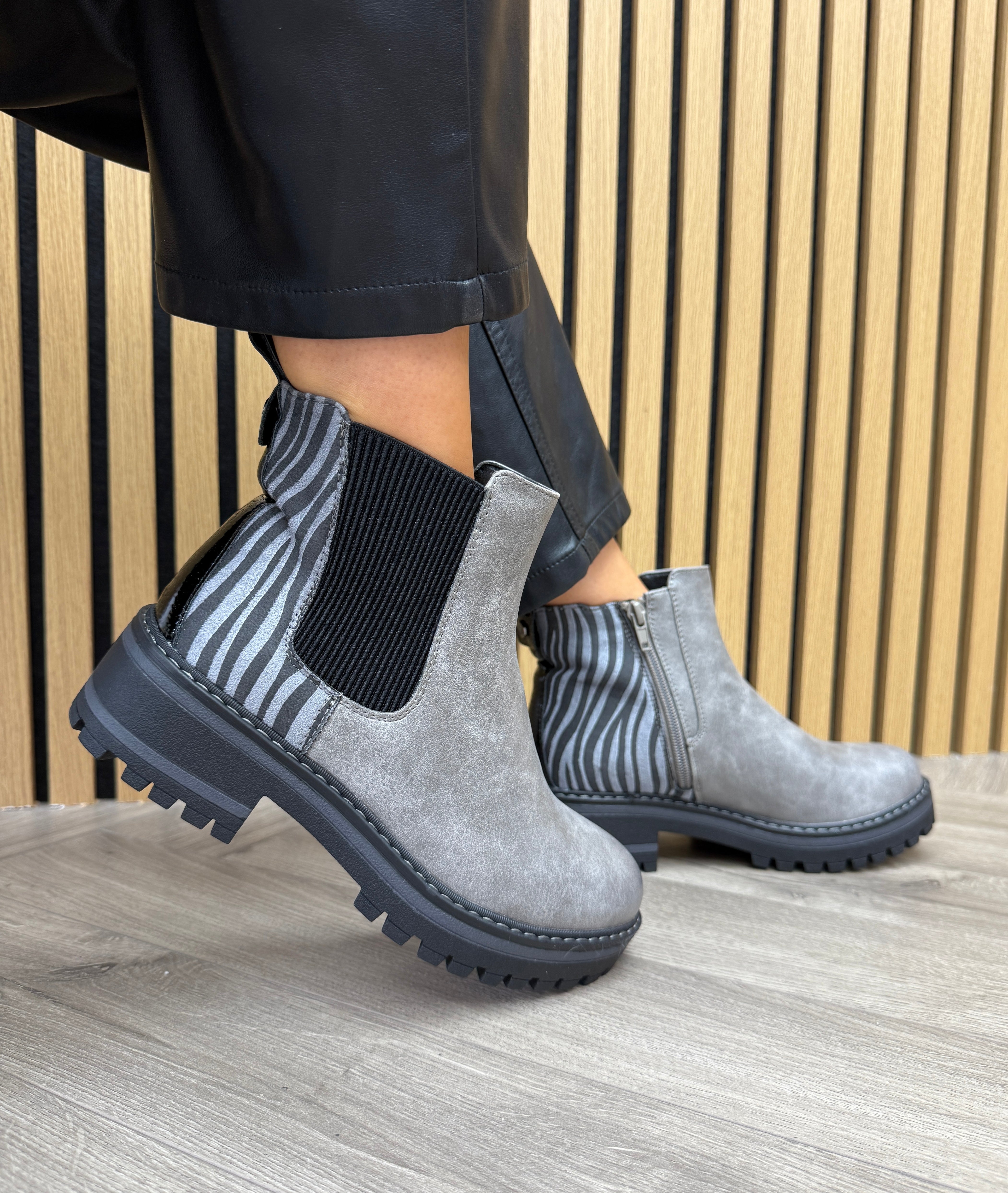 Lotus ‘Prescott’ ULB501 Chunky Ankle Boot With Zebra Print - Grey/Zebra (LO17AW)