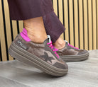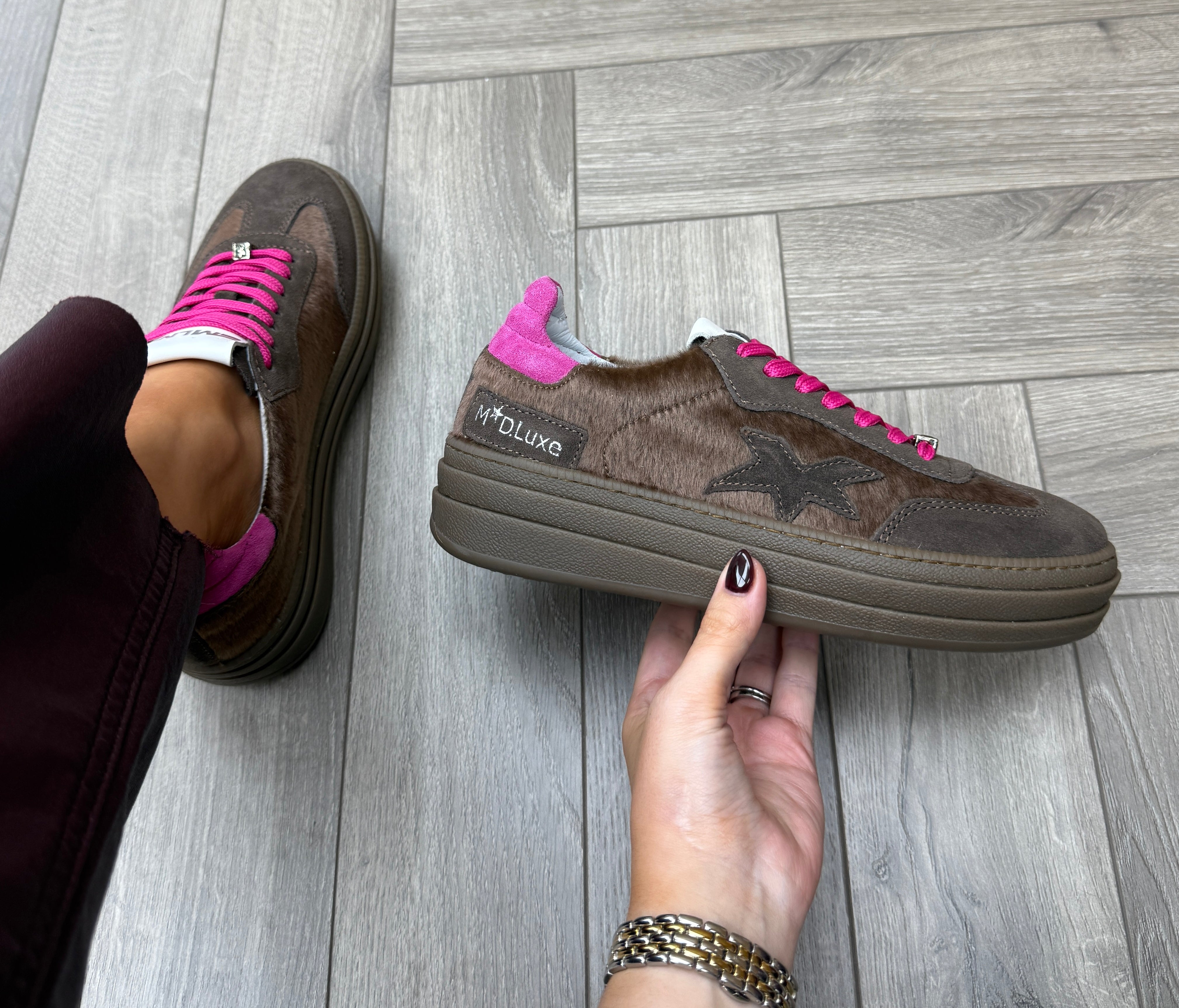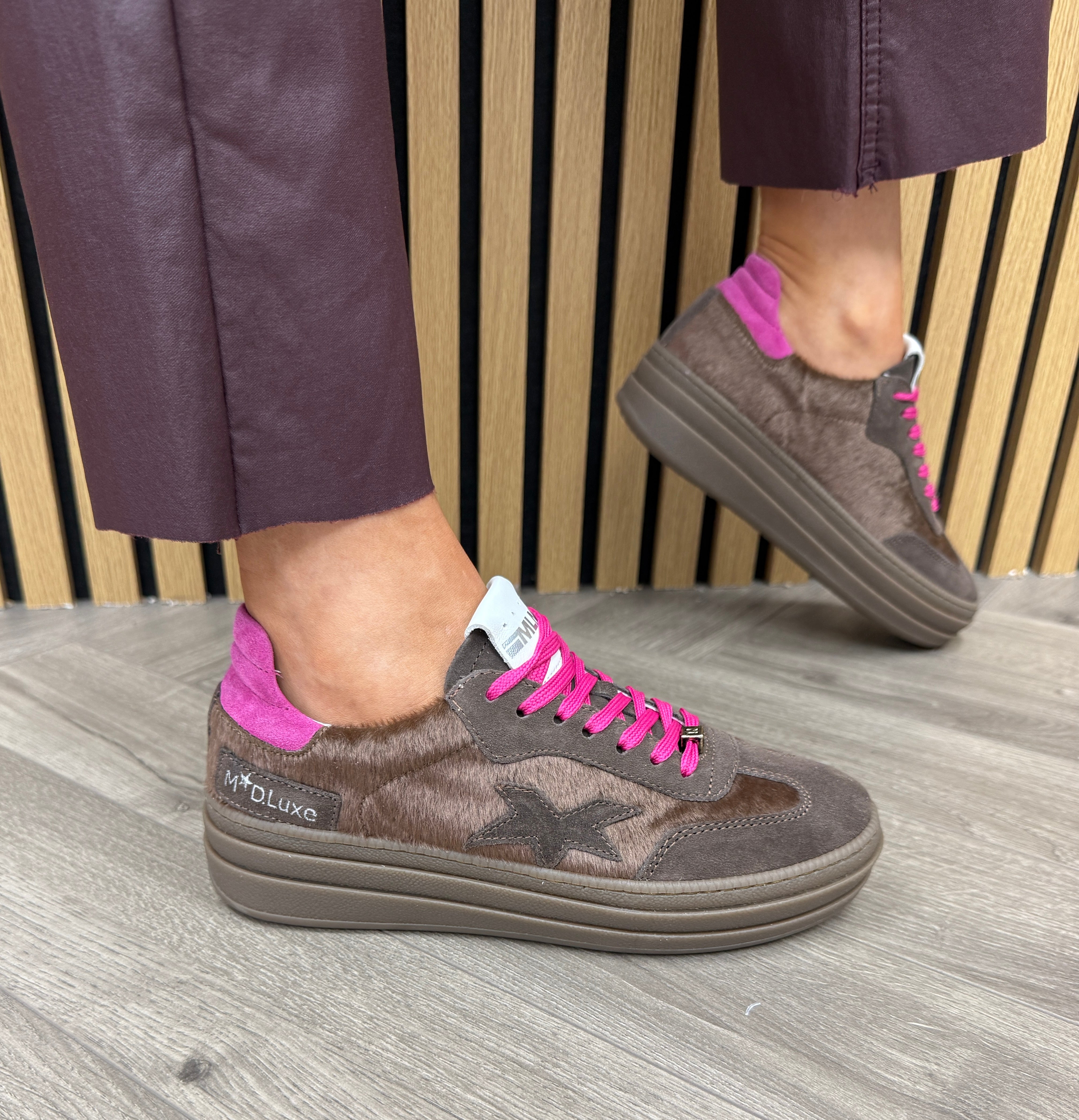 Meline (ME13) Platform Trainer With Bright Pink Laces 526 Z - Coffee