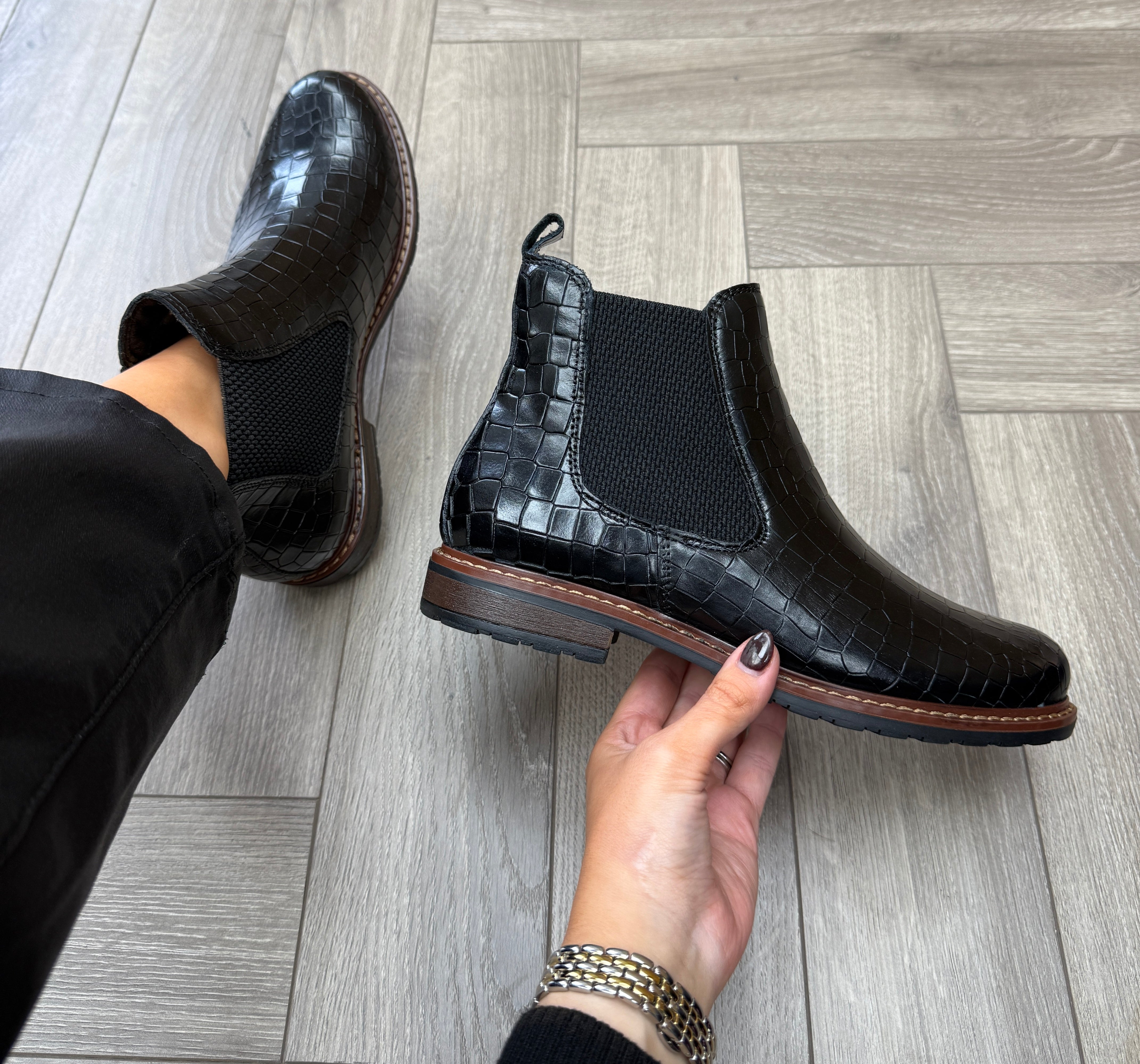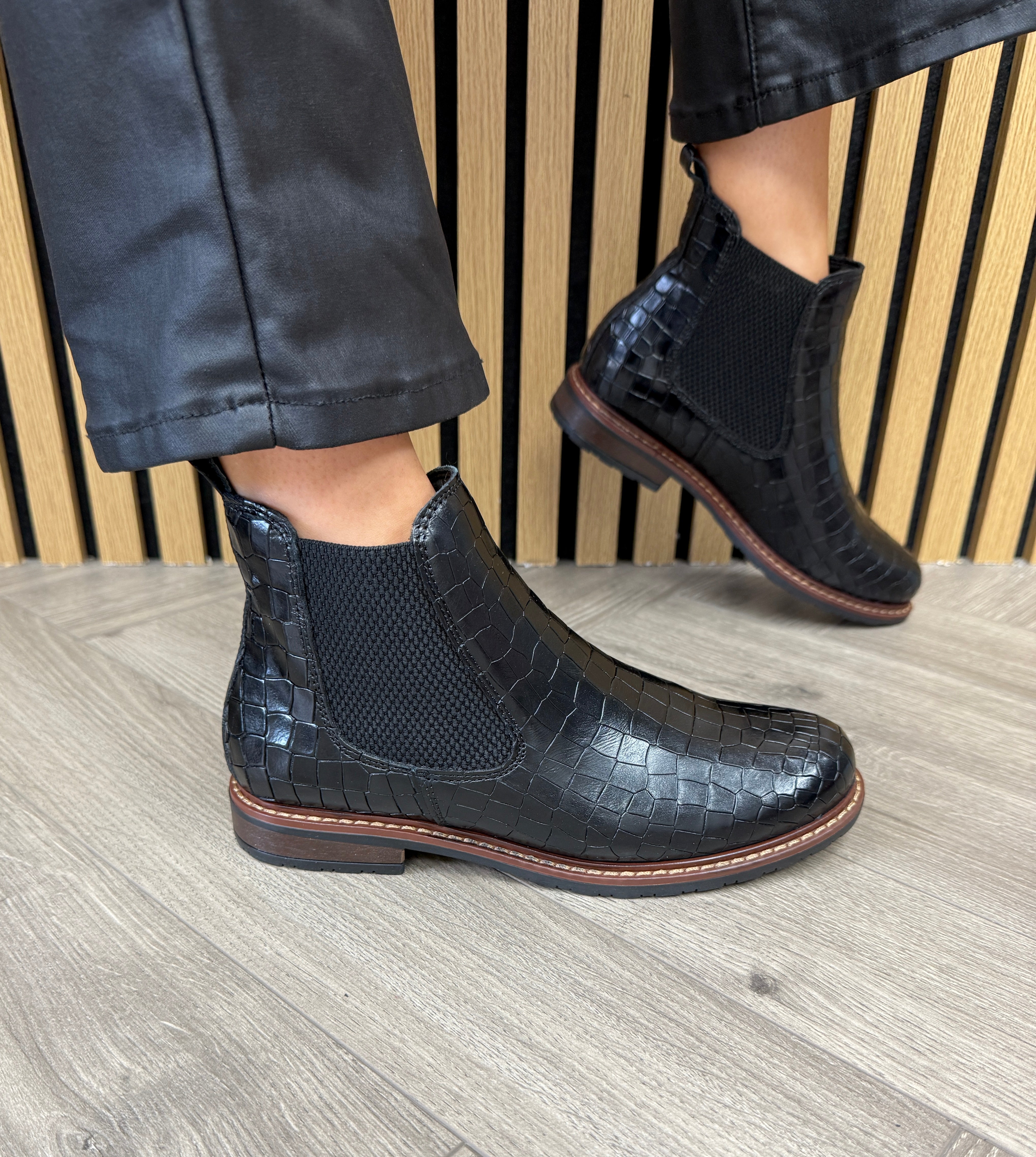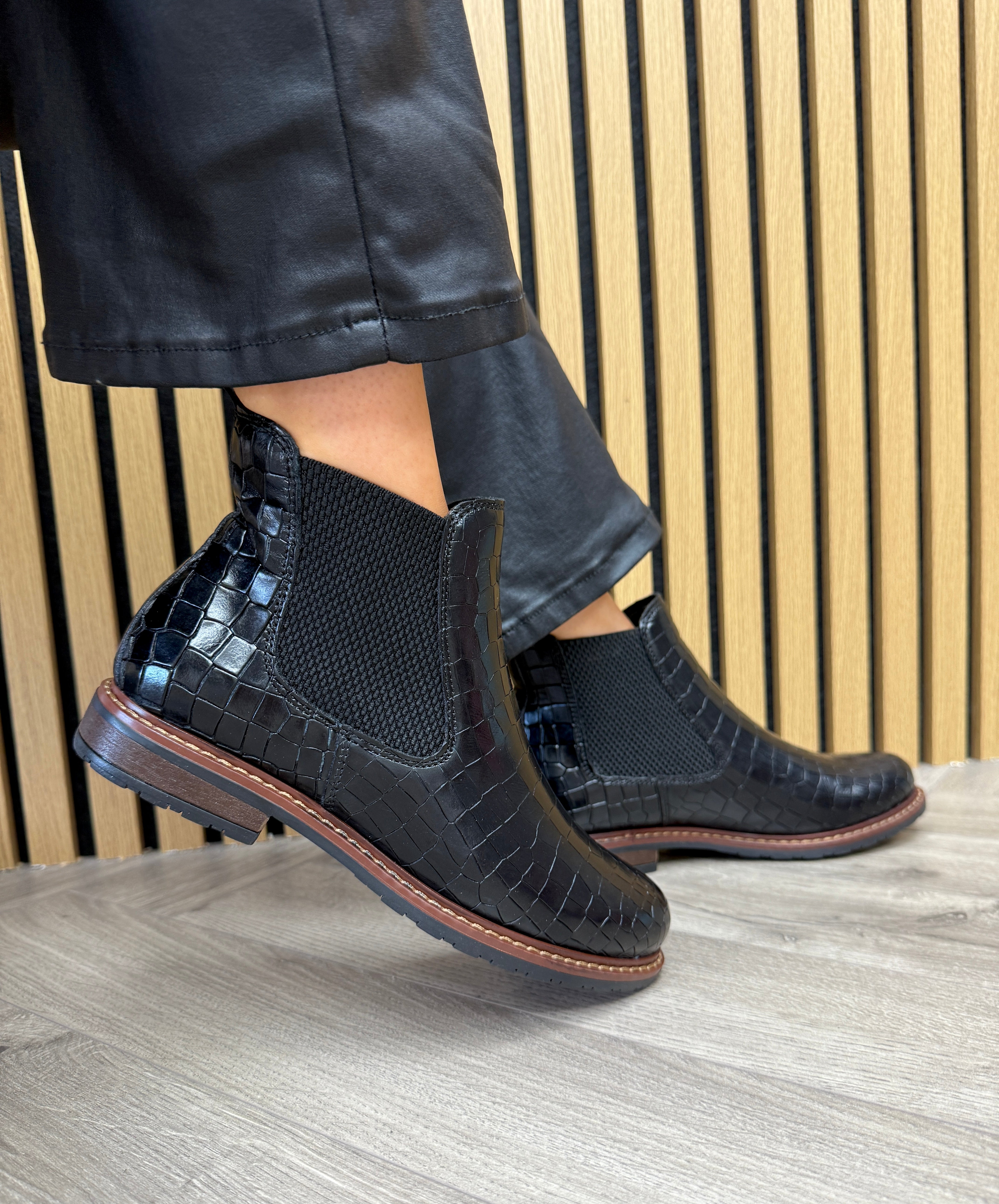 Tamaris 1-25056-41 Pull On Croc Print Boot - BLK Lea.Croco (T37AW)