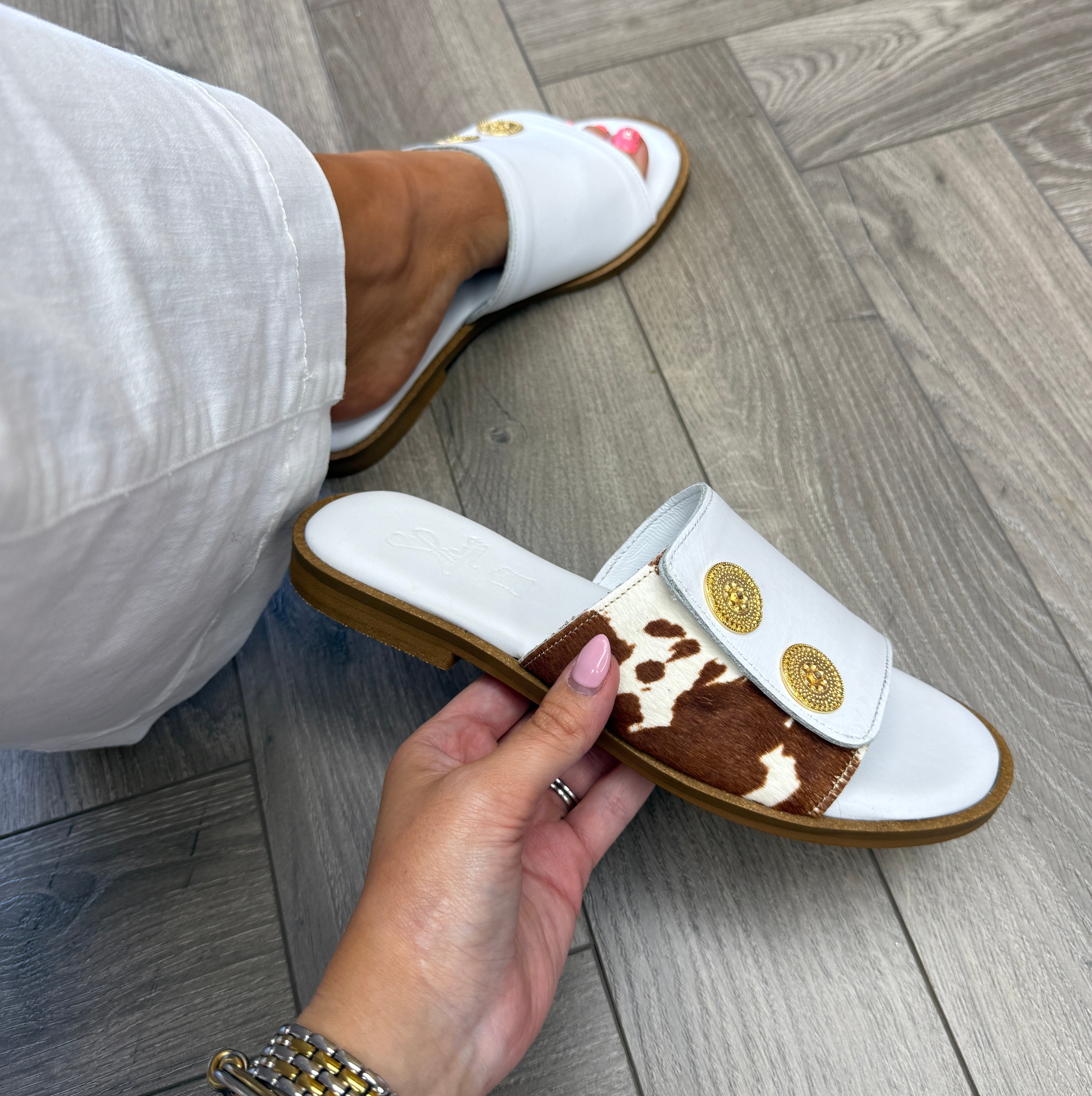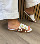 S.Piero ‘E108-023 Leather Cow Print Slider - Pony Cow Brown (SP1)
