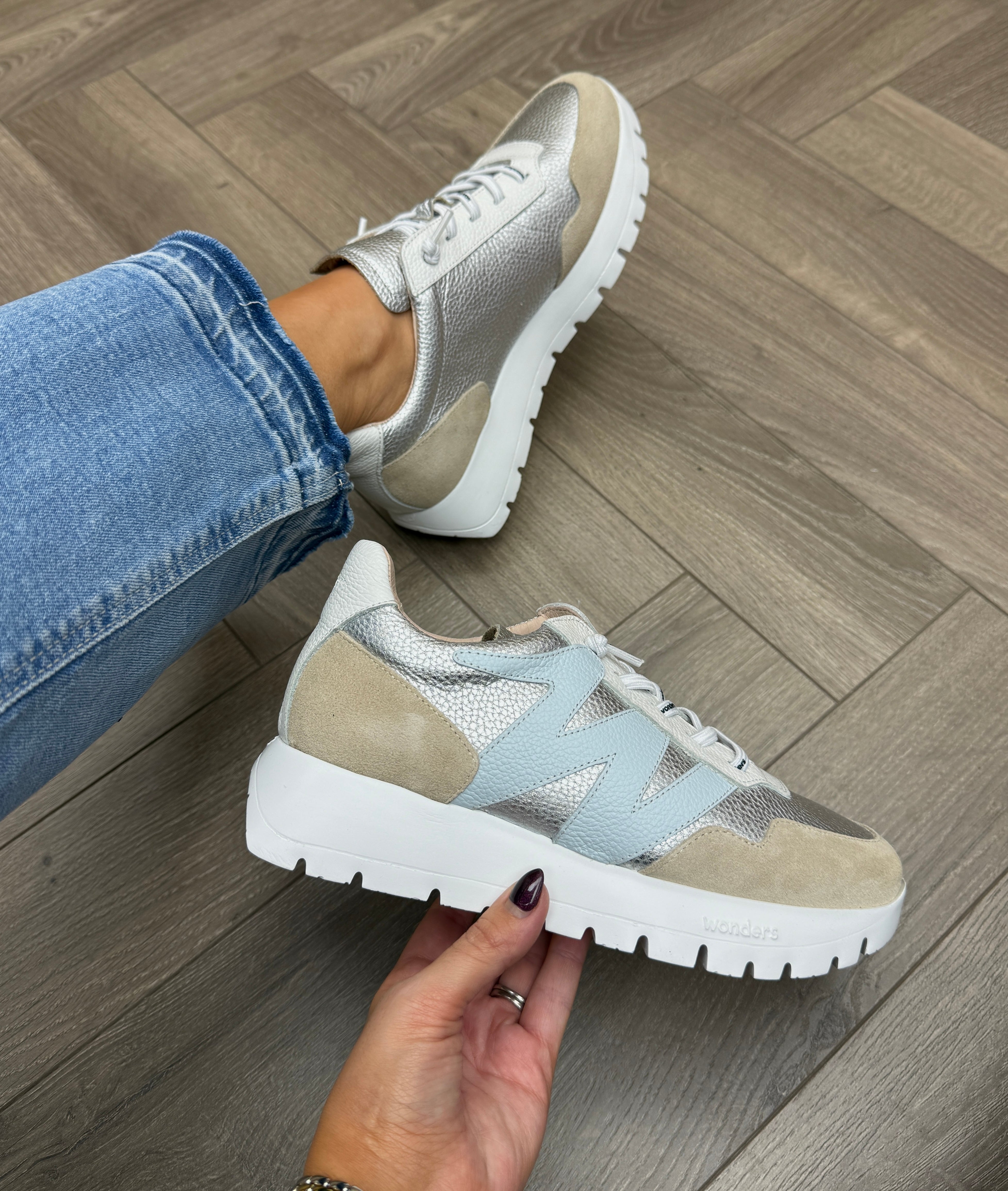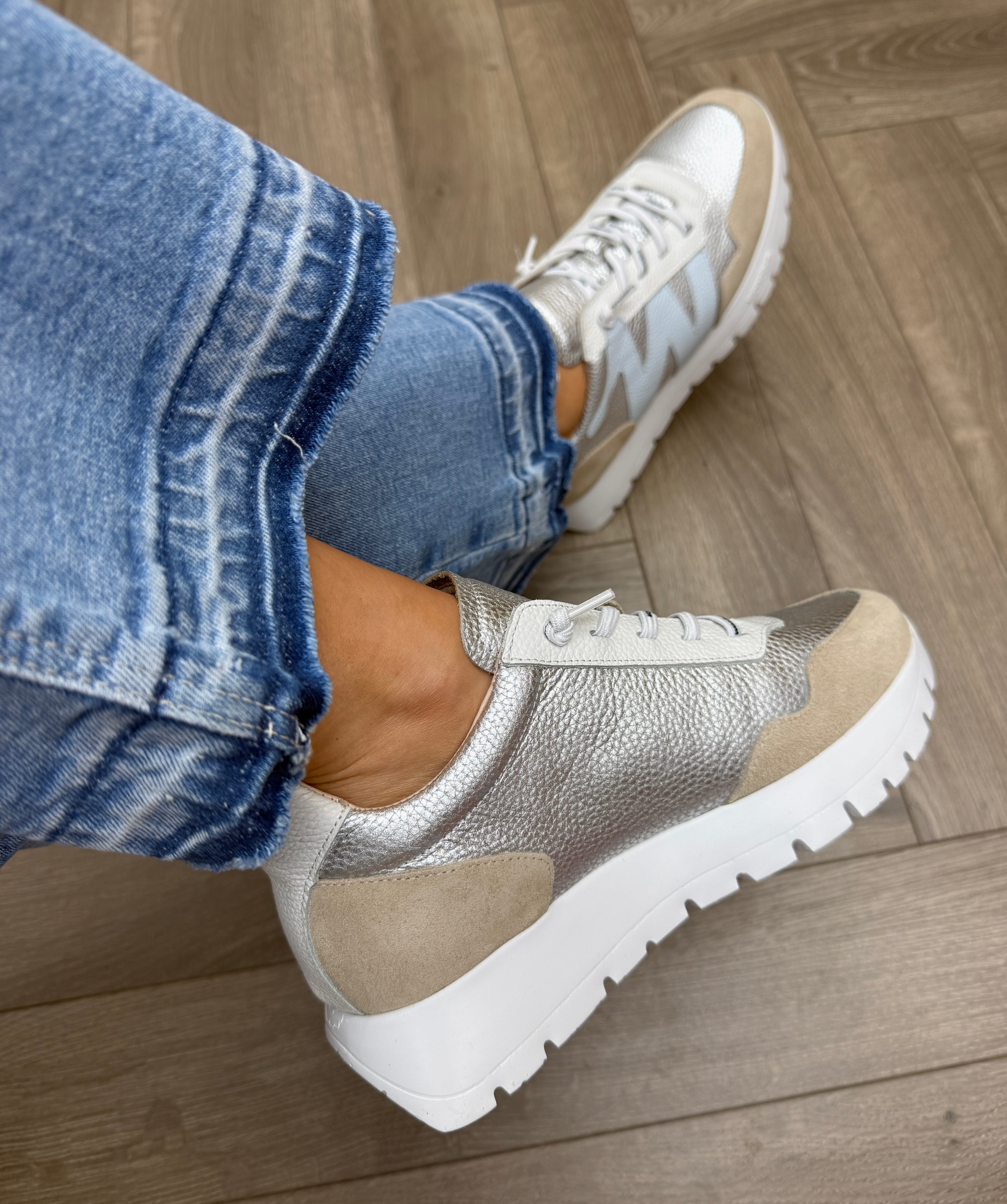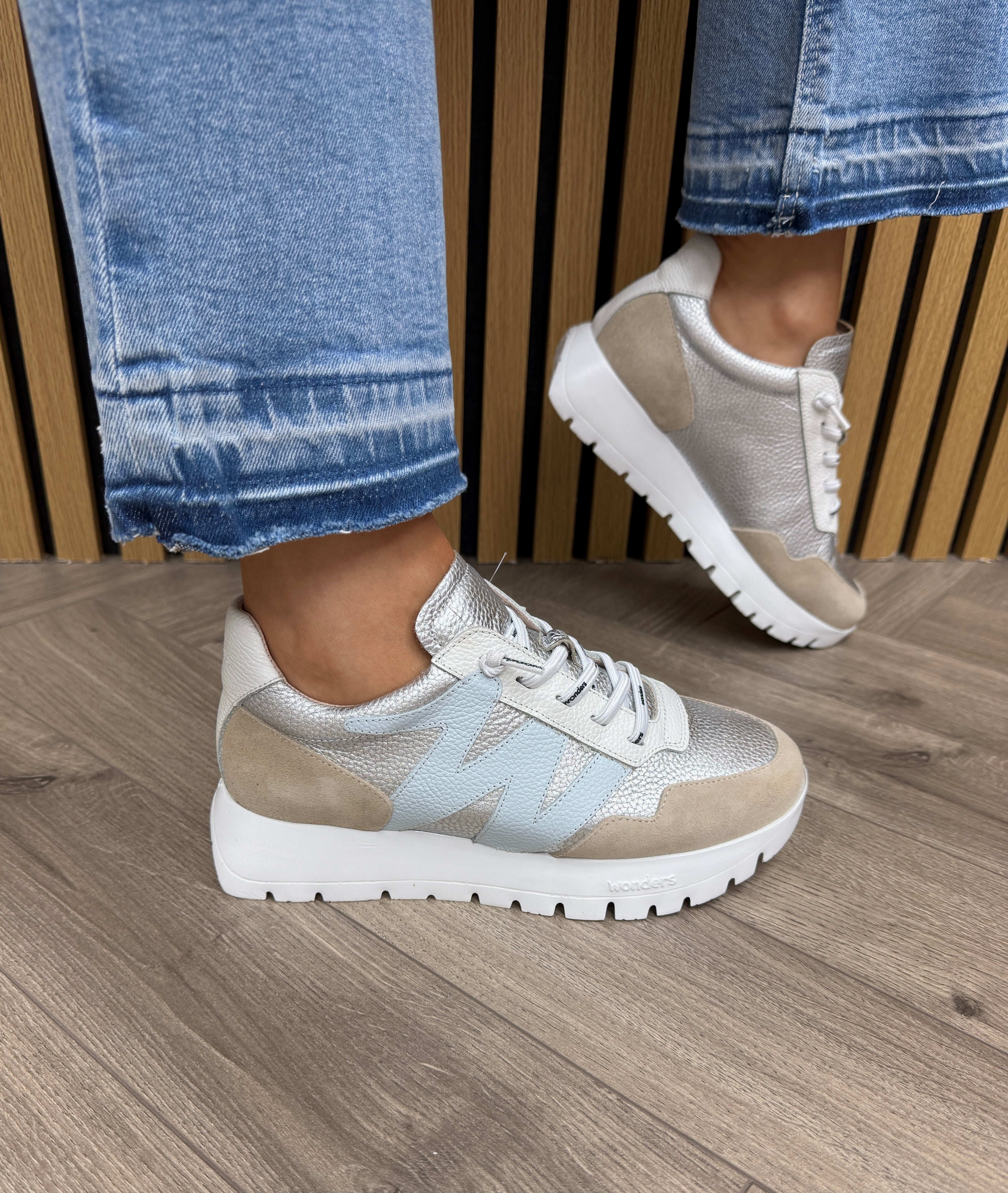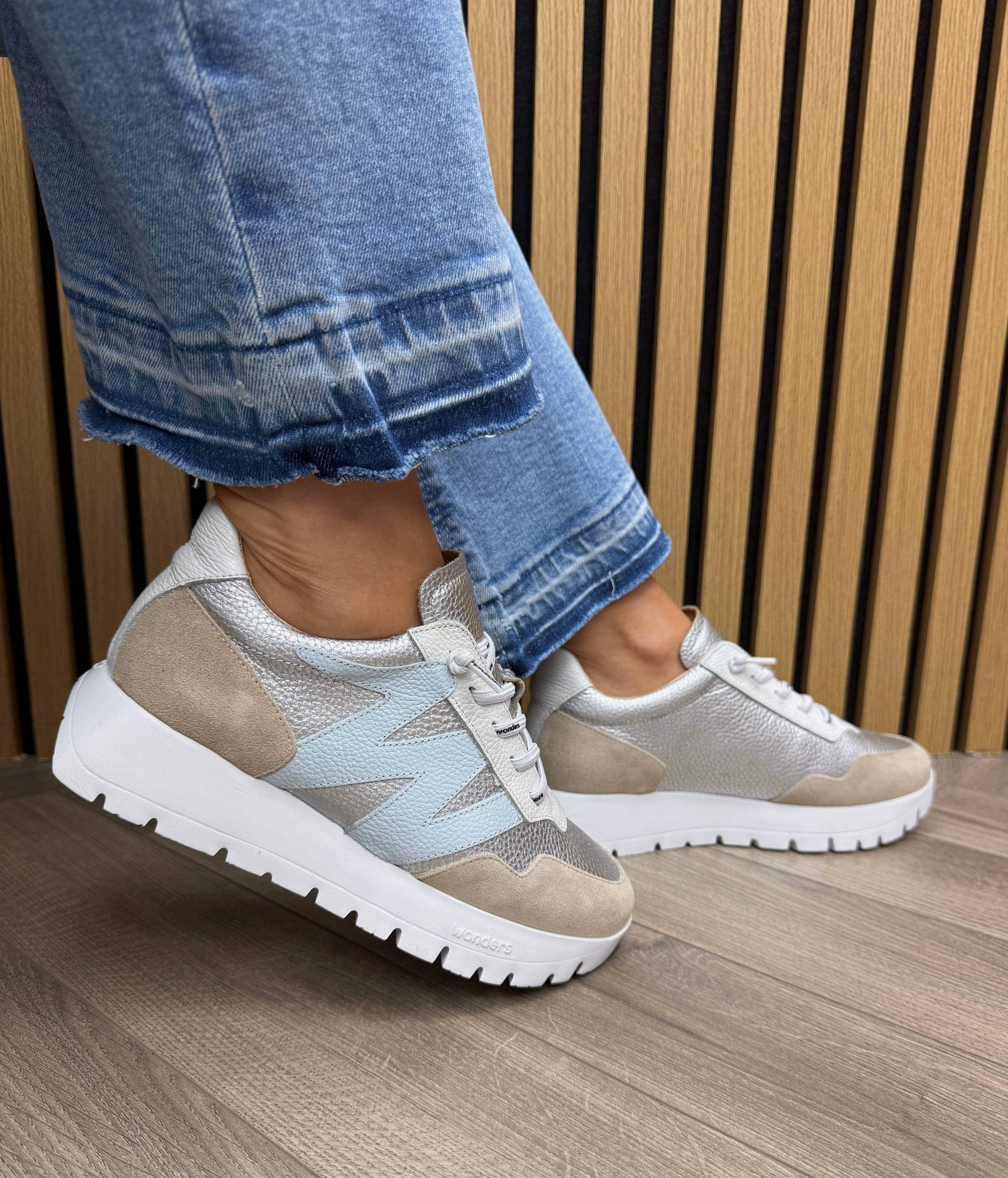 Wonders A-24101 Elevated Trainer With Sliver Insert - Beige/Plata (W47)